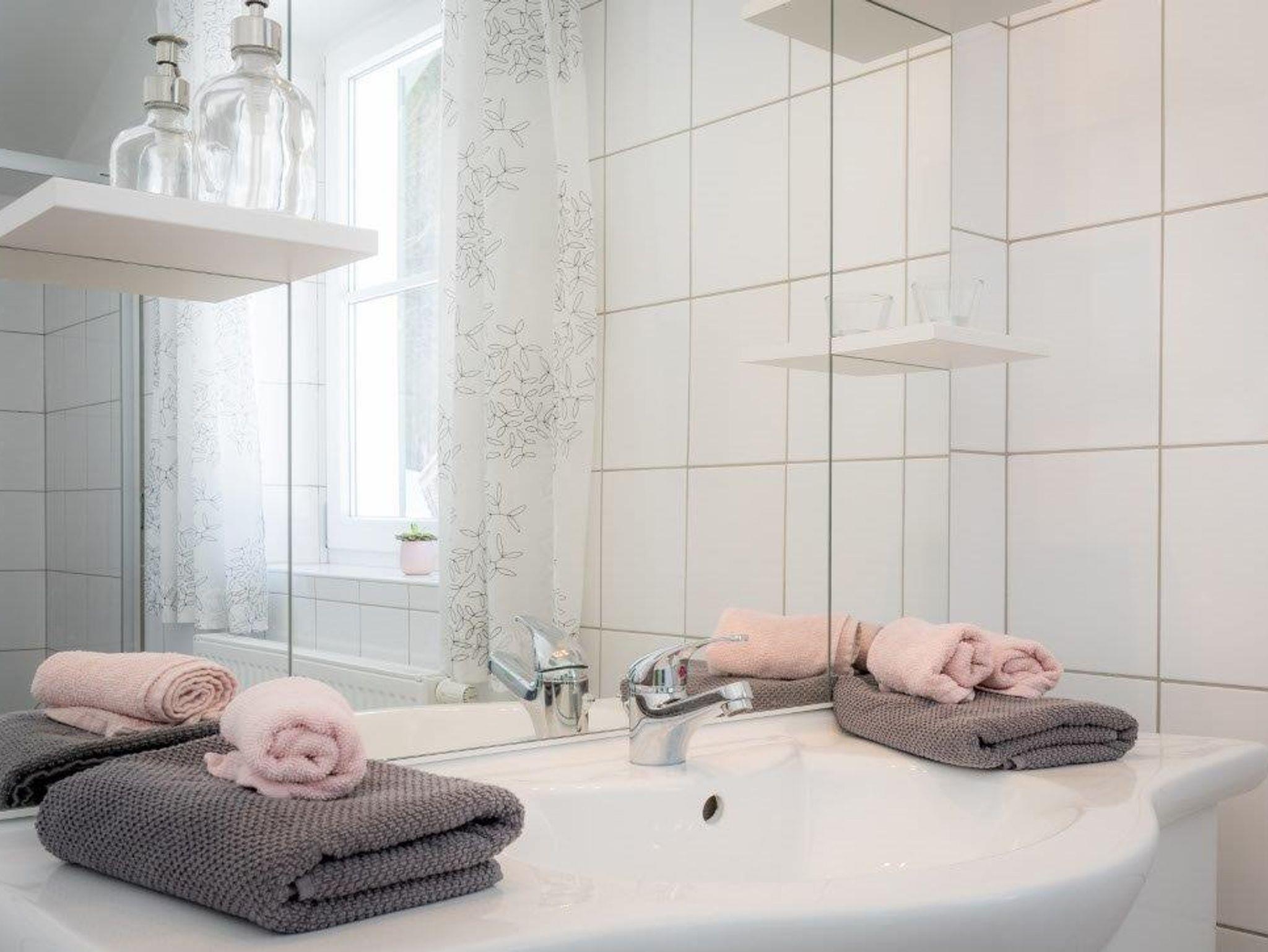 Das komplett ausgestattete eigene Bad bietet eine Dusche und einen Haartrockner, sowie einen Hocker für unsere kleinen Gäste. Handtücher werden selbstverständlich zur Verfügung gestellt.