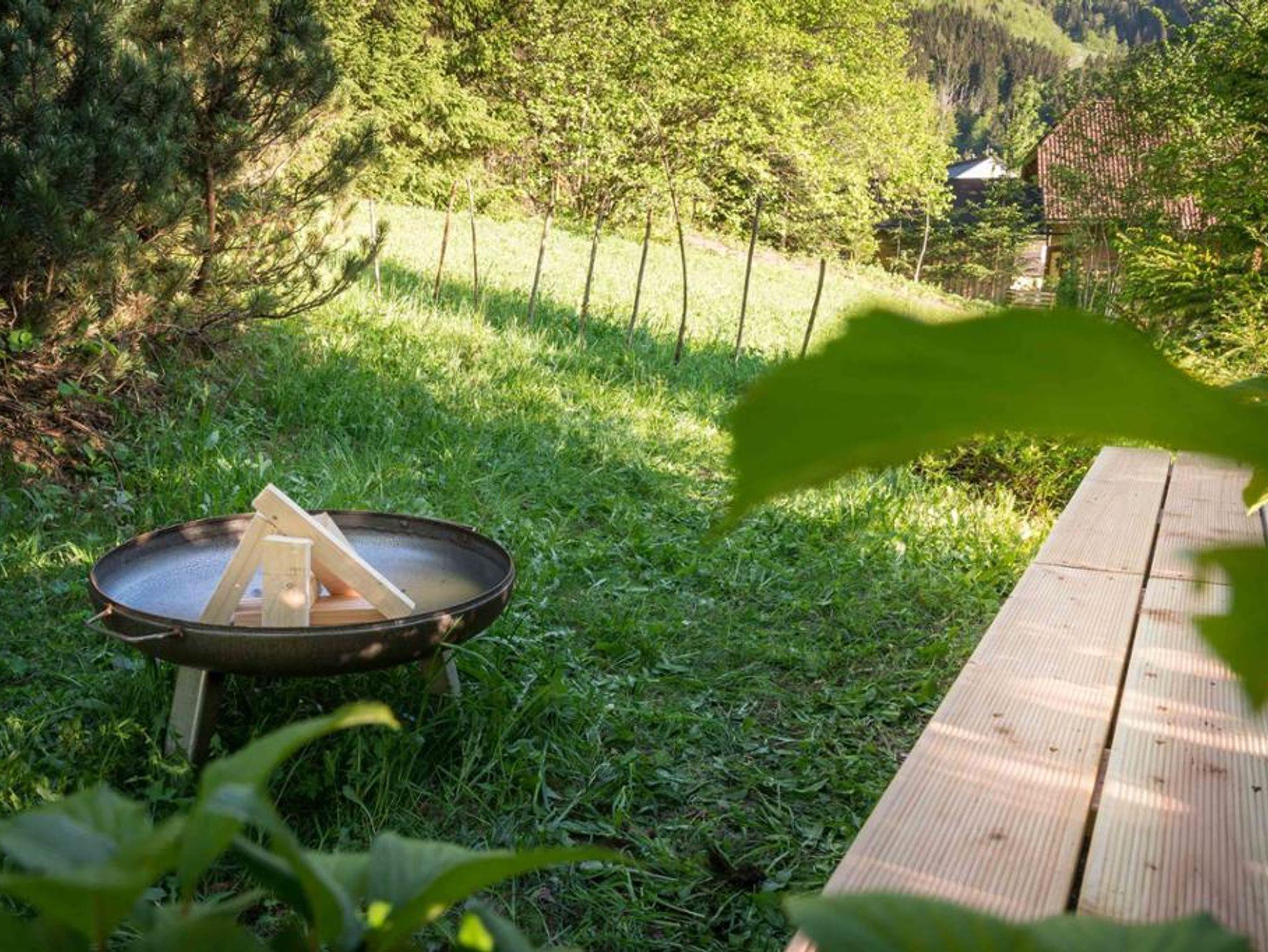 Unseren naturnahen Garten mit Feuerstelle und Holzkohlegrill erreichen Sie über die Stufen beim Carport.