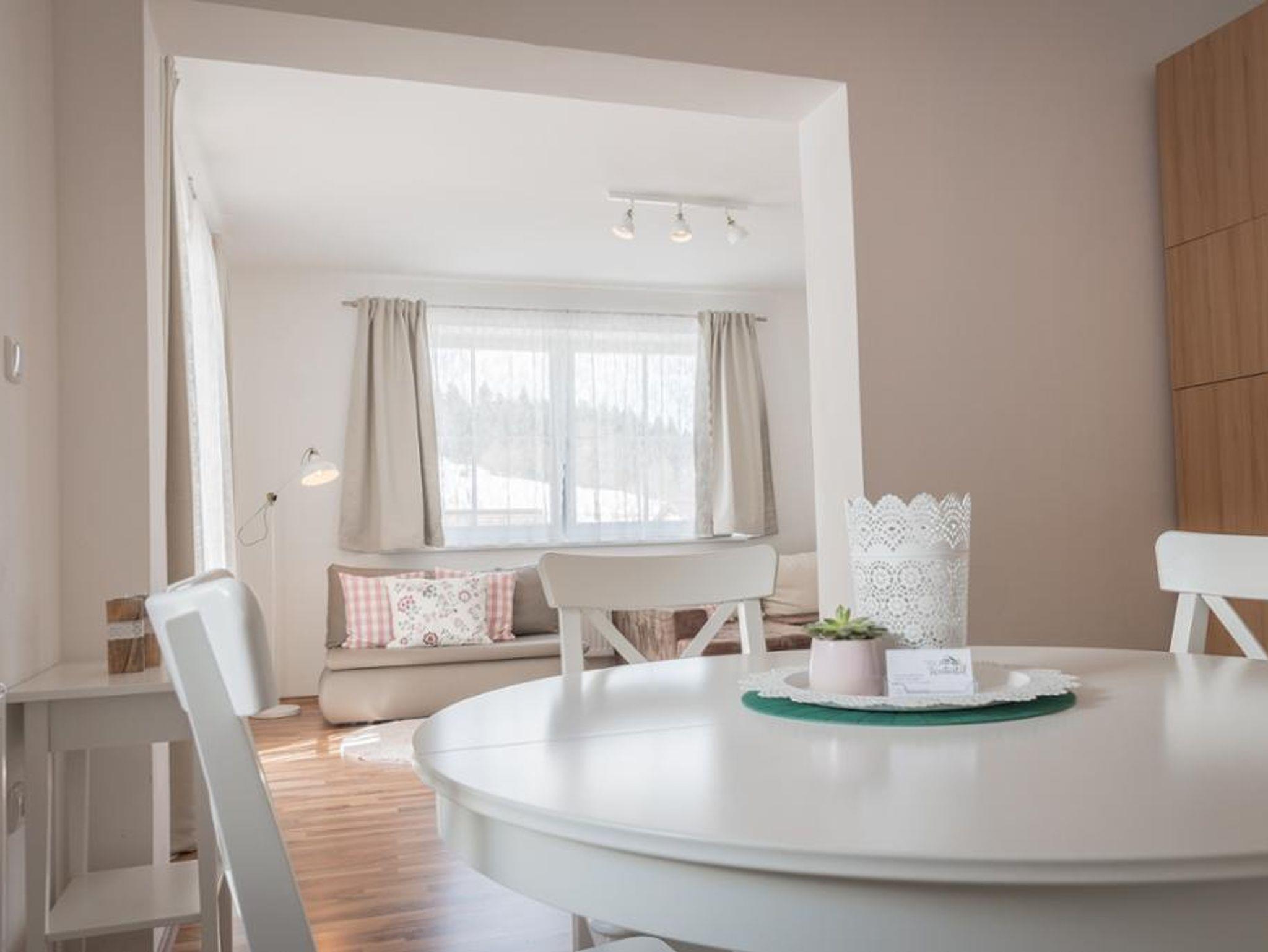 Weiters verfügt diese Wohnung über ein Wohn-Esszimmer sowie ein Schlafzimmer mit Doppelbett. Für die 3. und 4. Person steht im Wohnzimmer eine Schlafcouch bereit.