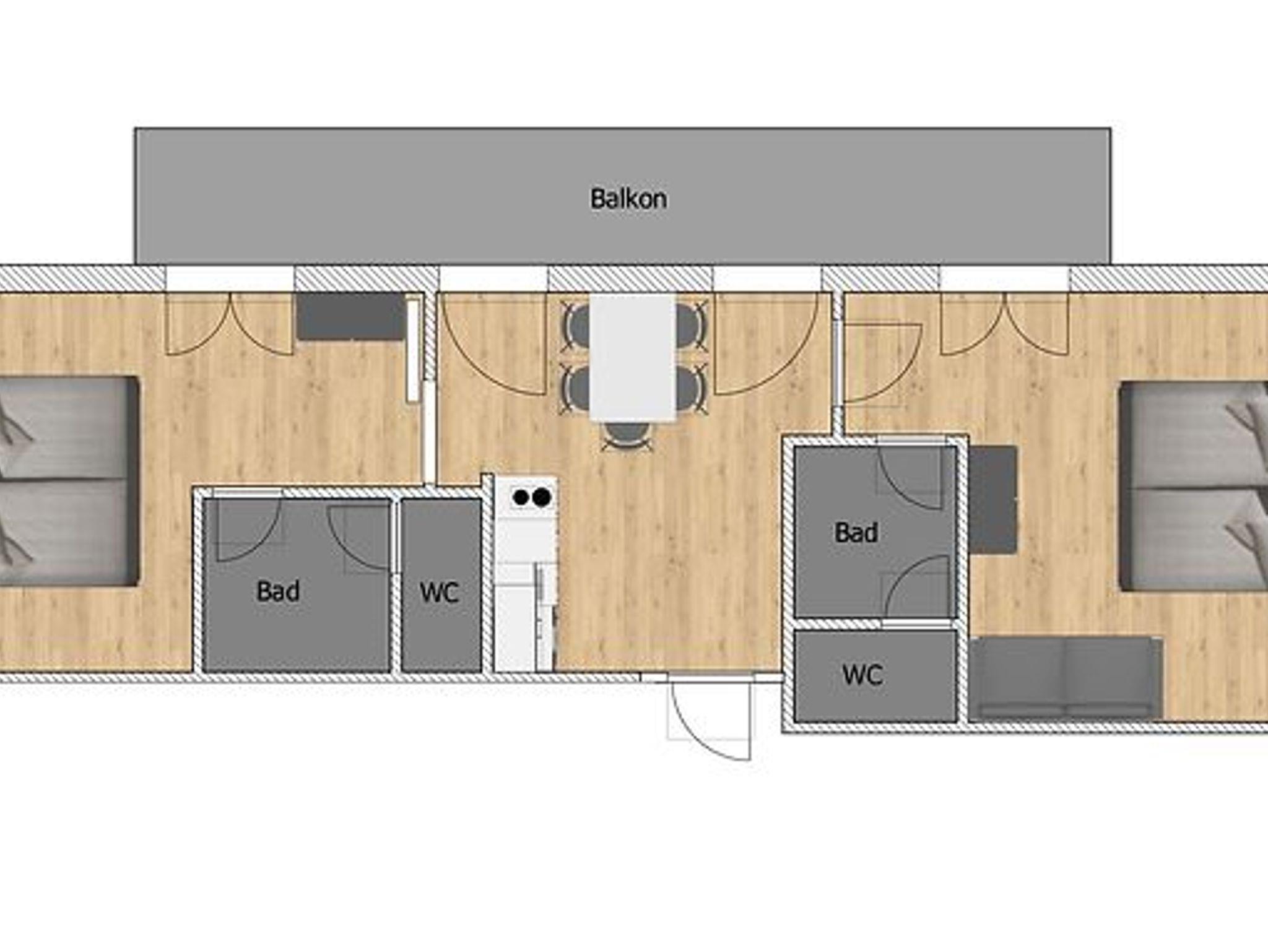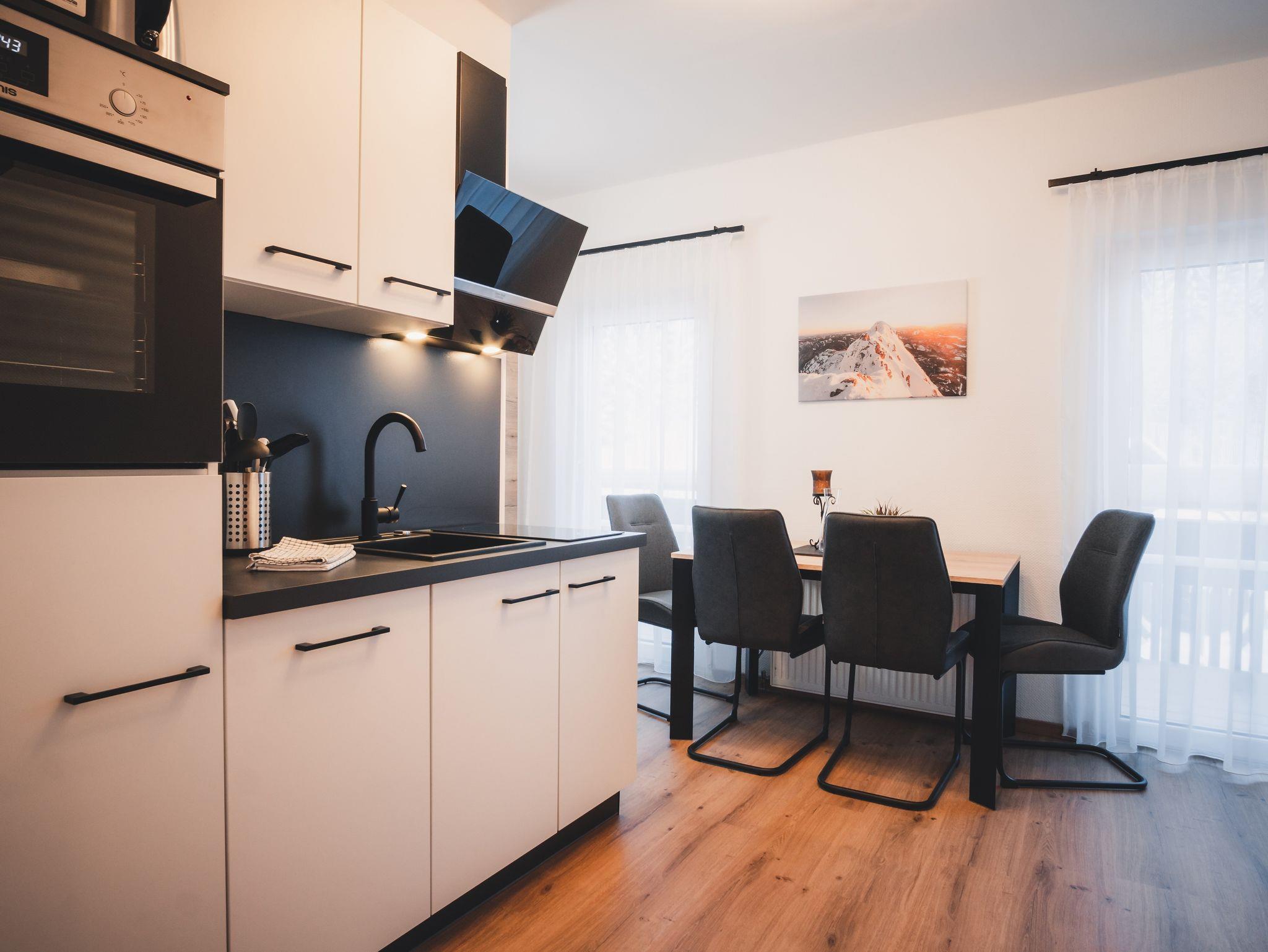 Unser Appartement Goaswiesn bietet Platz für 4-5 Personen. Zusätzlich zu den beiden Schlafzimmern und dem Wohn-/Essbereich steht Ihnen ein großzügiger, eigener Balkon zur Verfügung. Die beiden Schlafzimmer verfügen über FlatTVs, separate Badezimmer und WCs und sind mit Bettwäsche und Handtüchern ausgestattet. WLAN ist inkludiert.