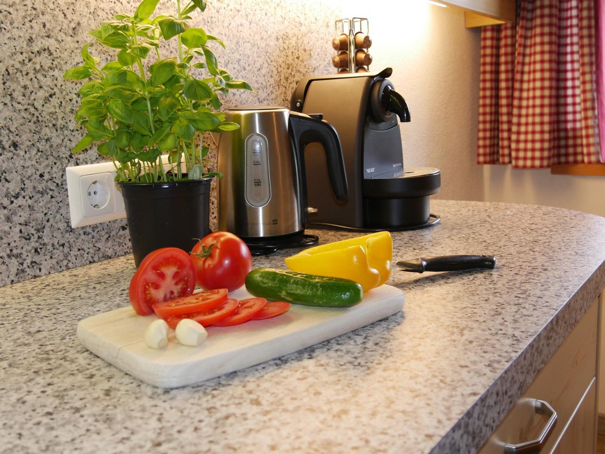 • große Wohnküche mit Herd | Backrohr | Geschirrspül- & Kaffeemaschine | Wasserkocher | Nespresso | Kühlschrank | Gefrierfach | Mikro | Radio | Ess-Sitzecke | Ess- & Kochgeschirr | Tischwäsche | Blick in den Garten