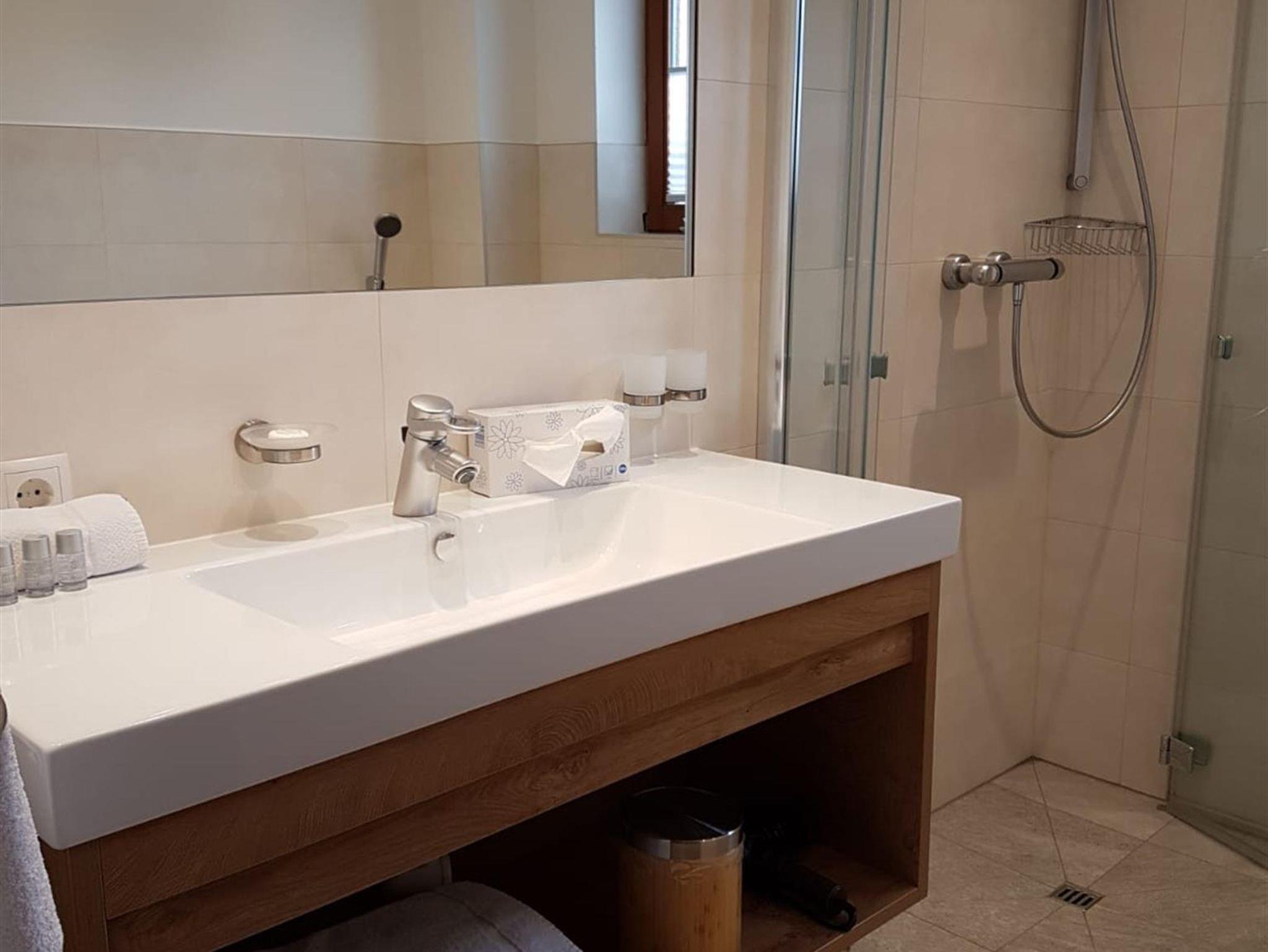 • Bad mit Doppelwaschbecken | Dusche & Badewanne | Fön, Hand- & Duschtücher | Seife & Duschgel | Kosmetikspiegel &-tücher
