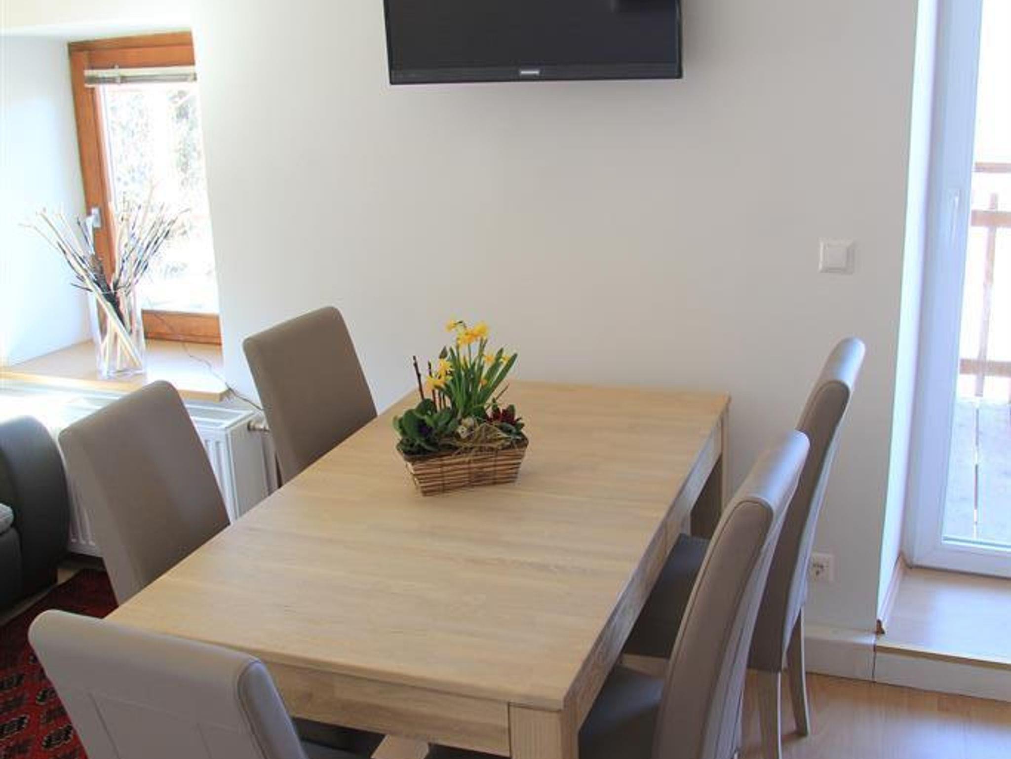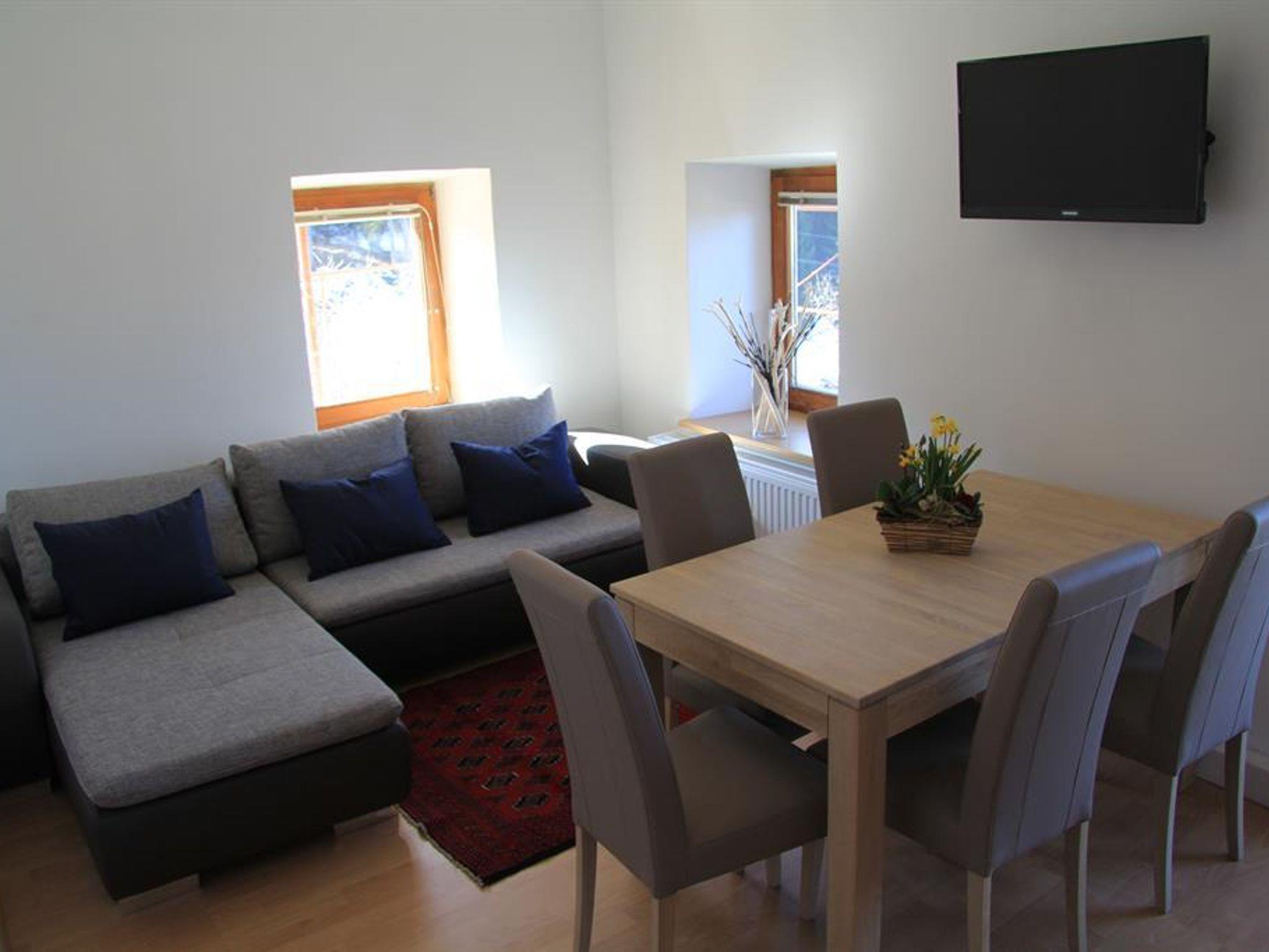 Die Wohnung Burgblick bietet ausreichend Platz für vier Personen. Die 45 qm Wohnfläche beinhalten ein Schlafzimmer mit einem 1,80 m breiten Doppelbett und Kleiderschrank, ein modernes Badezimmer mit Dusche, ein kleines Schlafzimmer mit zwei Einzelbetten, Kleiderschrank und Nachttisch sowie ein Wohn- /Esszimmer mit voll ausgestatteter Küche mit Spülmaschine, Glaskeramik-Kochfeld, Kühlschrank und separatem Gefrierschrank. Die Couch ist – so wie alle unsere Polstermöbel – als Schlafcouch nutzbar und hat eine Breite von 1,40 m. Die Wohnung bietet somit Schlafmöglichkeiten für maximal sechs Personen. Am Esstisch finden bequem bis zu sechs Personen Platz und die gemütliche Wohnecke ist mit einem 27-Flachbildschirm und Sat Anlage ausgestattet. Vom Balkon haben Sie eine einmalige Aussicht auf den Dobratsch und das Dreiländereck.