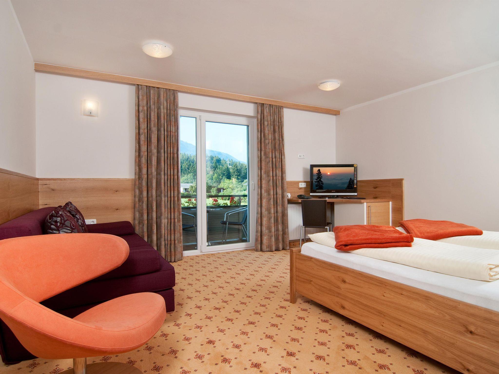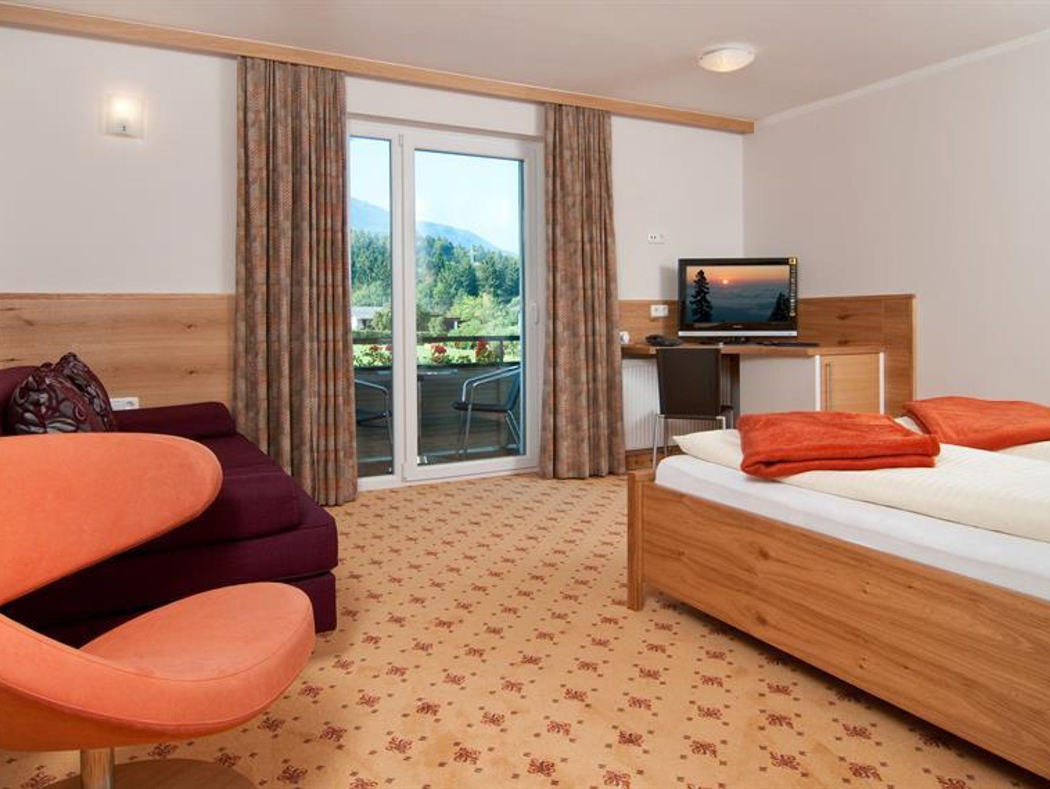 Neu erbautes wohnlich-trendiges Hotelzimmer in der 1. Etage unseres Hotels. Herrlicher Ausblick auf die Karawanken und auf die Villacher Alpe. Alle Balkone zur Sonnenseite. 33-40 m² Wohnfläche bieten Garderobe & Schrank, sowie einen Wohnbereich mit Schreibtisch, Fauteuil und Sofa. Das komfortable und großzügige Bad, ausgestattet mit den neuesten italienischen Fliesenmodellen und einer Dusche aus Glaselementen, harmonieren mit dem Gesamtbild des gehobenen Komforts. Zur state-of-art Ausstattung gehören unter anderem: FLAT-Screen-TV mit SAT, Telefon, Wireless-Lan, Kühlschrank und Zimmersafe.