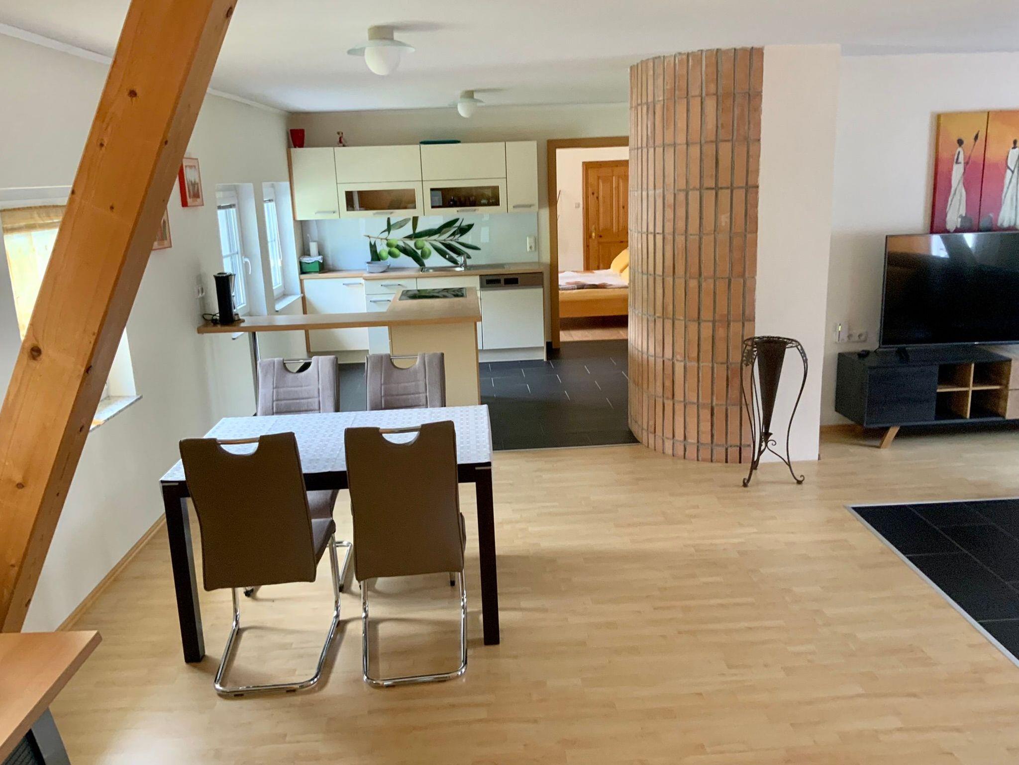 Unsere geräumige Ferienwohnung ist ideal für Paare oder kleine Familien, die eine Auszeit vom Alltagsstress suchen. Mit einer Fläche von etwa 90m² bietet sie ausreichend Platz, um sich rundum wohlzufühlen.