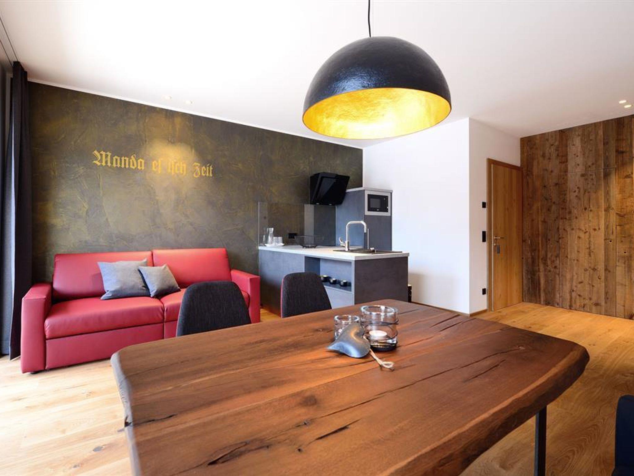 Im Andreas Hofer Apartment erwarten Sie nicht nur eine große Wohnküche mit 30 m² und zwei Schlafzimmer, jedes mit separatem Badezimmer, sondern auch eine exklusive Sauna mit Ruhebereich. Die Sonnenterrasse, direkt am Pool, gehört ganz Ihnen!