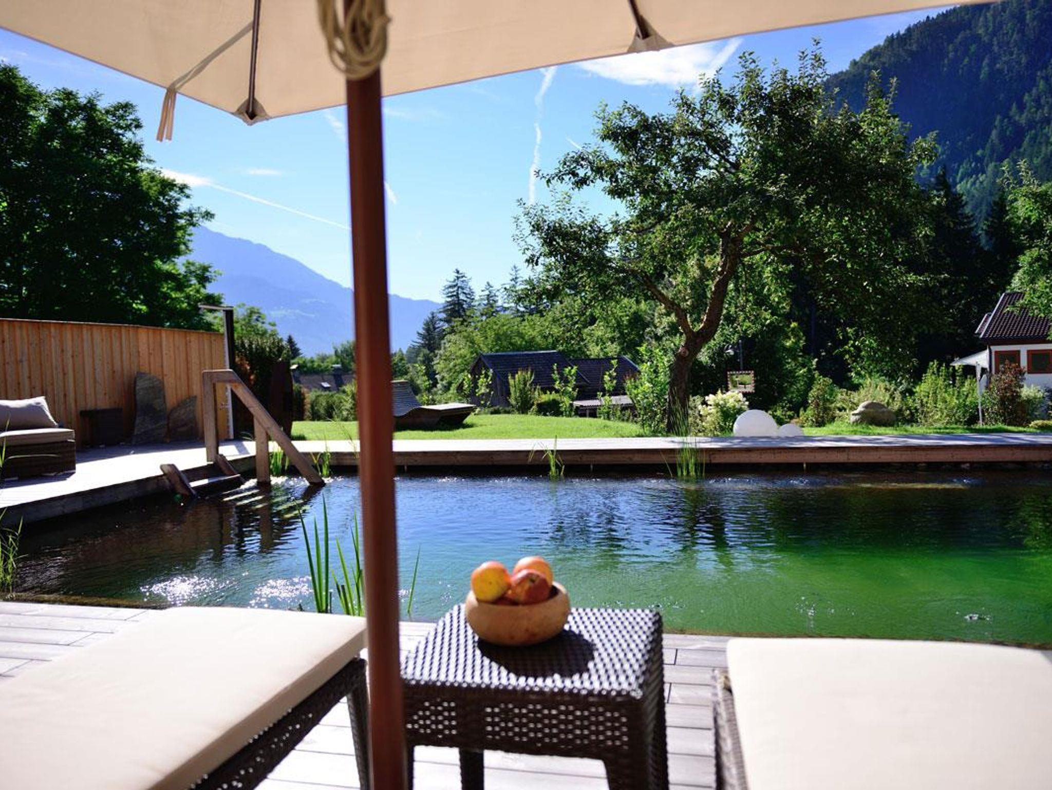 Das Leben genießen… Relaxen am Naturbadeteich, am Abend auf der Terrasse die Osttiroler Bergwelt bewundern und in den hochwertigen Apartments die Seele baumeln lassen. Bei einer Auszeit lässt sich das Leben in vollen Zügen genießen! In den drei hochwertigen, stilvollen Apartments mit vielen Naturmaterialien und Terrasse/Balkon mit Blick zum Pool können Sie es sich gut gehen lassen! In die Sonnenstadt Lienz und zum Dolomitengolfplatz Lavant sind es nur wenige Minu