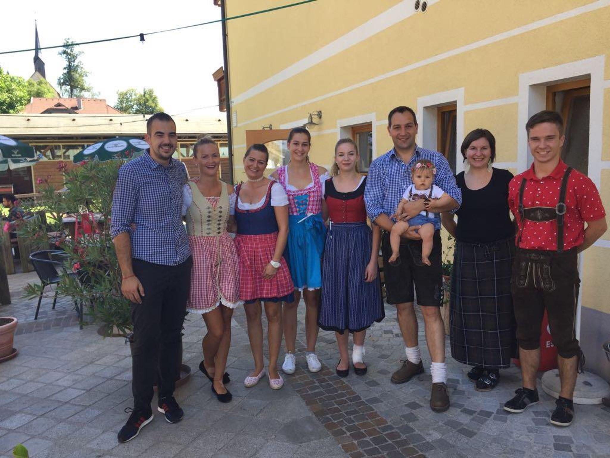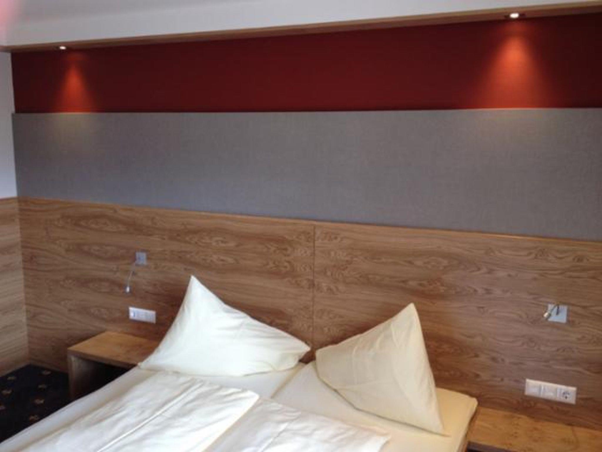 Unsere Ferienwohnung D verfügt über 2 Doppelzimmer (1 x mit Balkon), 1 Wohnschlafraum mit 2 Ausziecouchen und Balkon, Sat - TV mit Radio, eine moderne Küche mit Backofen, Geschirrspüler und Mikrowelle, einen großen Vorraum, ein Badezimmer mit Dusche und Badewanne, Fön und 1 getrenntes WC. Am Balkon steht auch eine Sitzgelegenheit zur Verfügung. Alle Mahlzeiten werden im Gasthof eingenommen.