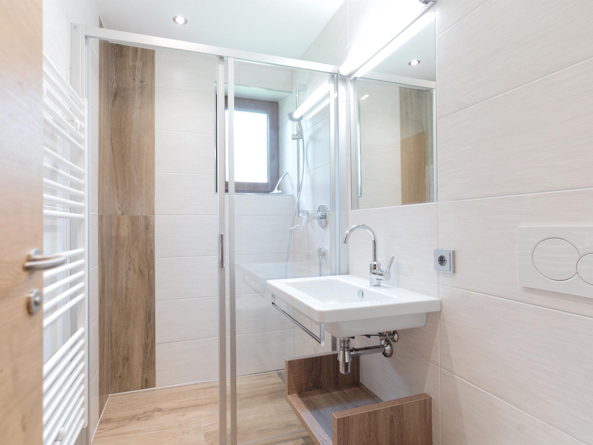 • ein Badezimmer mit Dusche und WC
