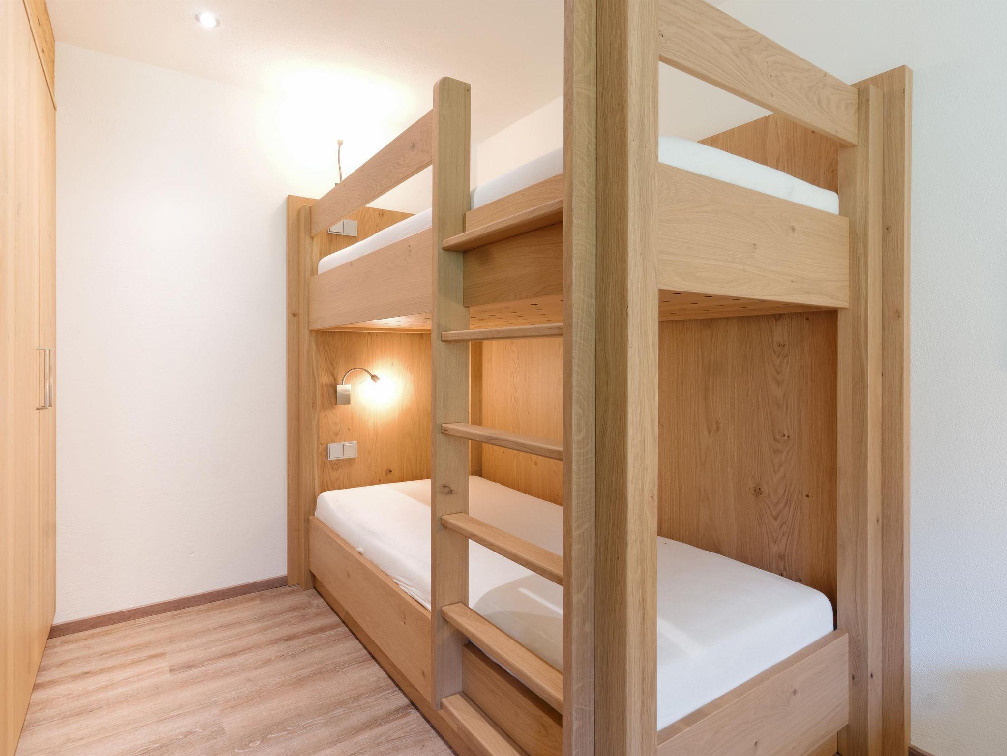 • ein Schlafzimmer mit Doppelbett und Stockbett