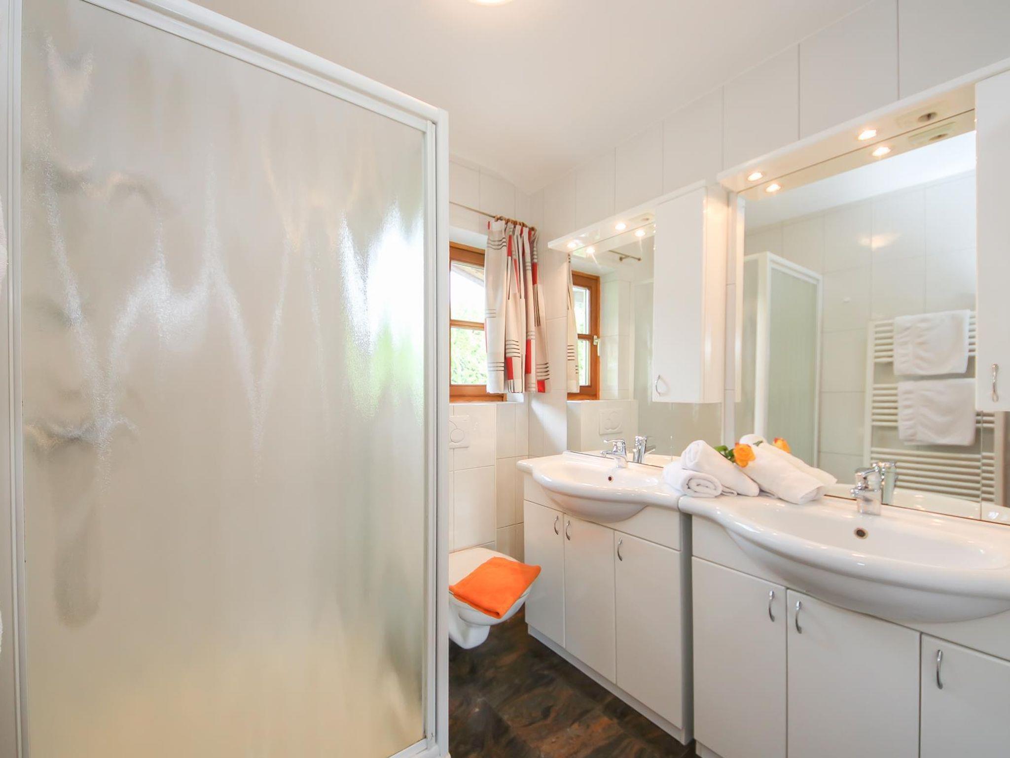 Große Wohnküche, Geschirrspüler, 1 Doppel- und ein 2-Bettzimmer mit jeweils einem Fernseher, 1 Badezimmer mit WC, 1 WC seperat und Waschmaschine.