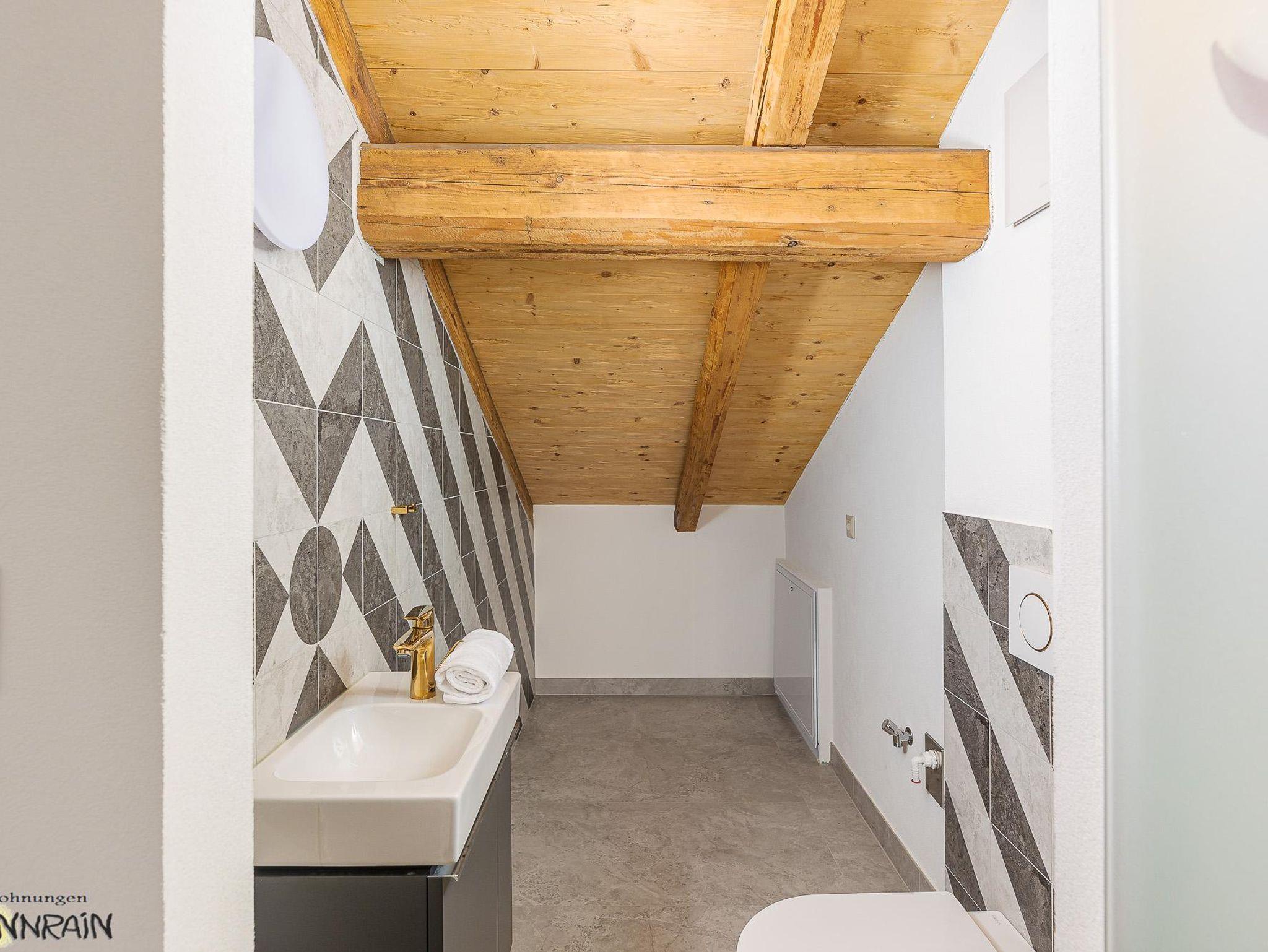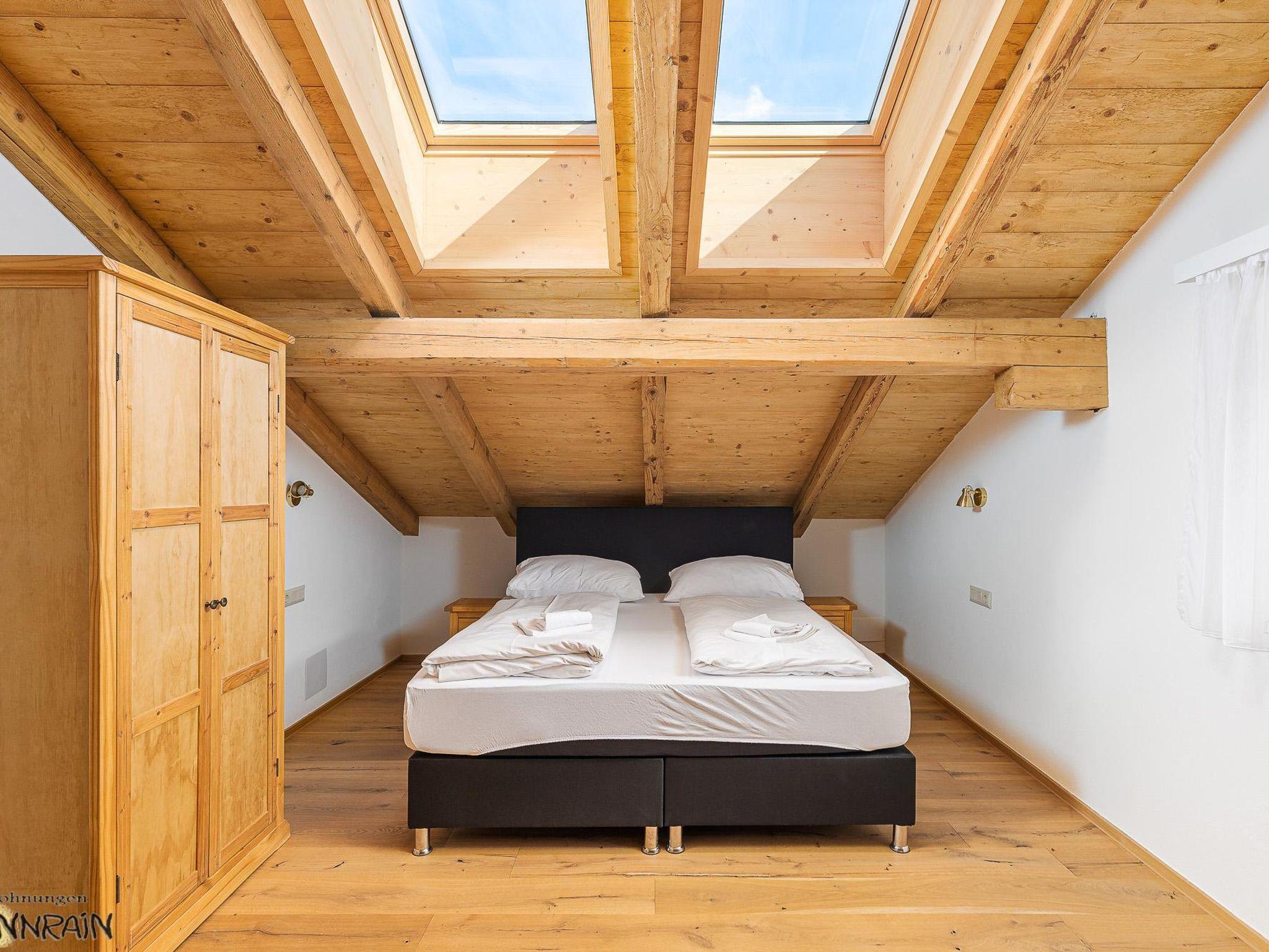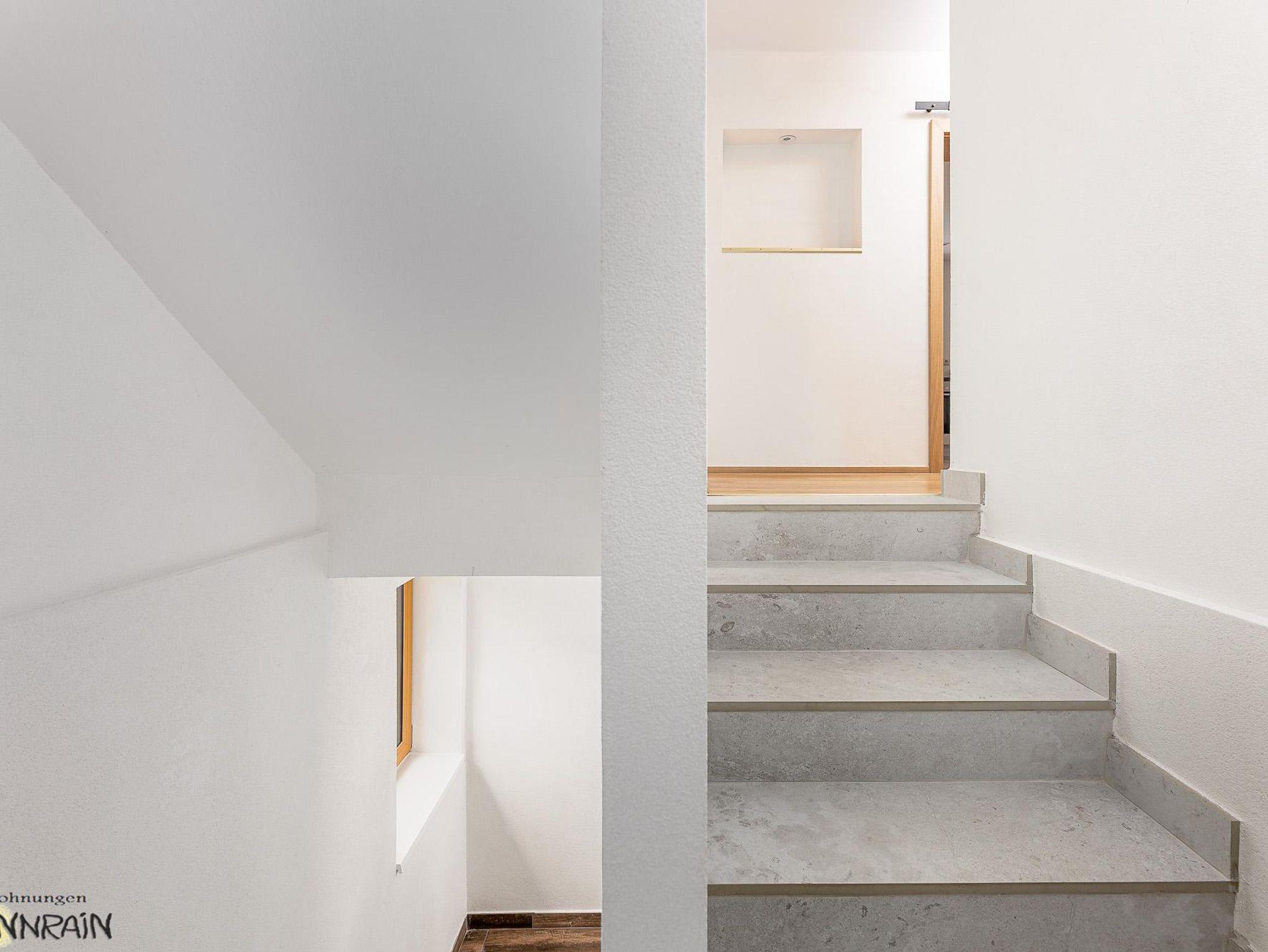 Das zweite Apartment hat auf dem ersten Stock ein Masterbedroom mit en Suite Badezimmer, zweites Schlafzimmer mit Balkonzugang, ein Badezimmer mit Dusche und WC, Küche, Balkon. Im Dachgeschoss sind weitere 2 Zimmer für bis zur 4 Personen, und eine WC mit Handwaschbecken und Waschmaschine, wo wir erwähnen müssen, dass aus Bautechnische Gründe die freie Höhe an einigen Stellen eingegrenzt ist. Sichtdachstuhl, Dachfenstern und eine Panorama Glasdach runden die Wohnung ab.