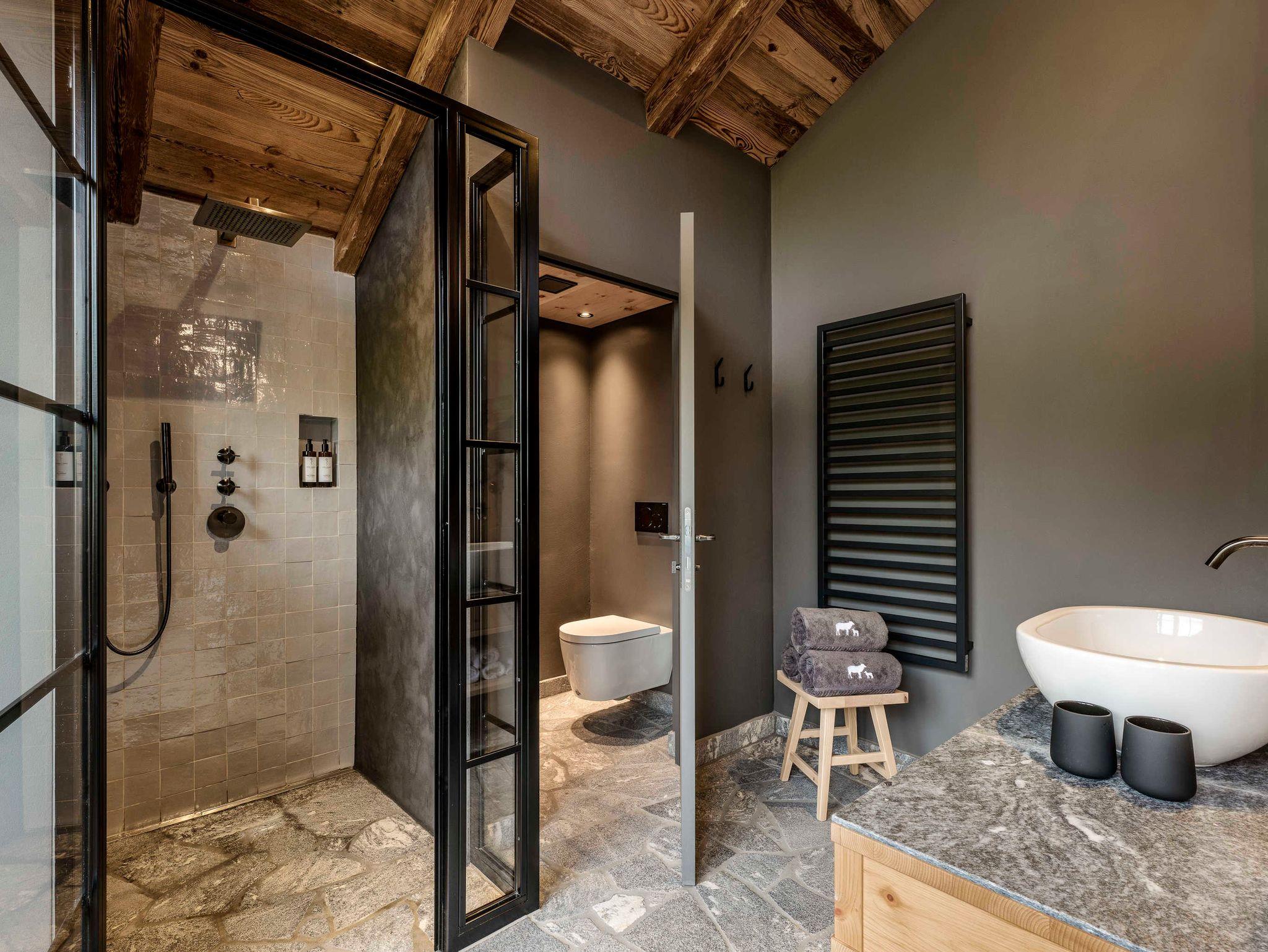 Endlich ausschlafen und im Bett frühstücken. In einem Doppelschlafzimmer im Obergeschoss mit Zirbenbett, sichtbaren Dachbalken, Balkon und Duschbad. Ein weiteres Reich der Träume bietet der Masterbedroom im Untergeschoss mit feiner Zirbendecke, großer Glasfront und Balkon sowie einem Bad mit freistehender Badewanne und zusätzlicher Regendusche.