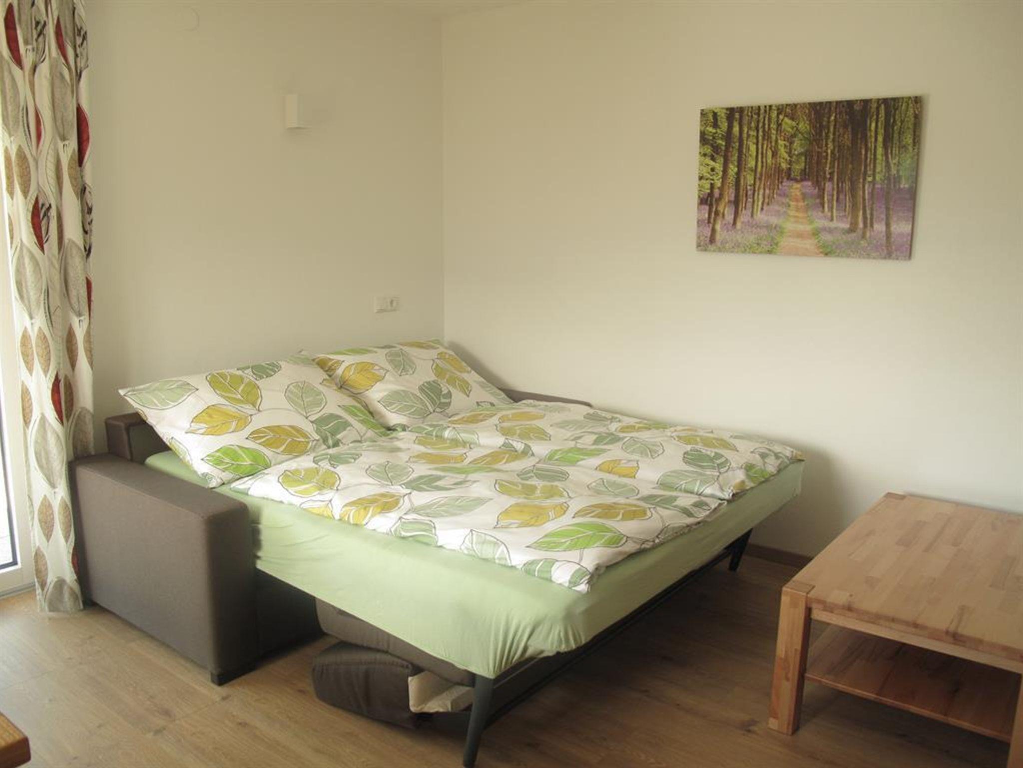 Unsere Wohnung ist 43m² groß. Sauber und modern ausgestattet. Die Wohnung bietet Schlafmöglichkeiten für 4 Personen. Ein 14 m² großes Schlafzimmer plus bequemes Schlafsofa im Ess- Wohnbereich. Die Küchenzeile ist mit Ceranfeld, Mikrowelle, Kühlschrank, Backrohr, Geschirrspühler und einer Kaffeemaschine ausgestattet. Im Ess-Wohnzimmer befindet sich ein Fernseher mit Kabelanschluss. In der gesamten Wohnung haben Sie kostenlos Wlan. Die Wohnung ist mit Aussenjalousien ausgestattet. Auf den 10 m² großen Balkon sind Gartenmöbel und ein Wäscheständer vorhanden. Die nächste Bushaltestelle ist in 2 Minuten zu Fuß erreichbar.