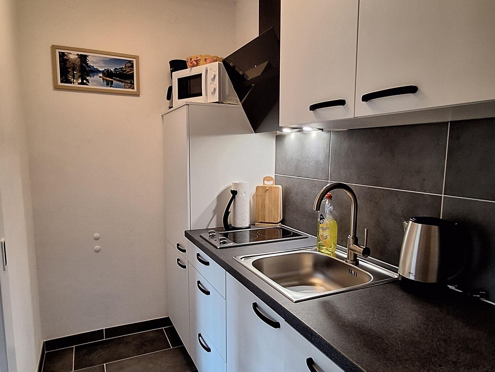 Die Wohnung bietet euch 2 Schlafzimmer (je Doppelbetten), 2 Duschen,kleiner Vorraum, 2 WC`s, eine kleine Küchenzeile(Kühlschrank,2Herdplatten,Mikrowelle,Kaffeemaschine und Toaster) und einem großzügigen Balkon wo ihr den Ausblick auf den Asitz genießen könnt.
