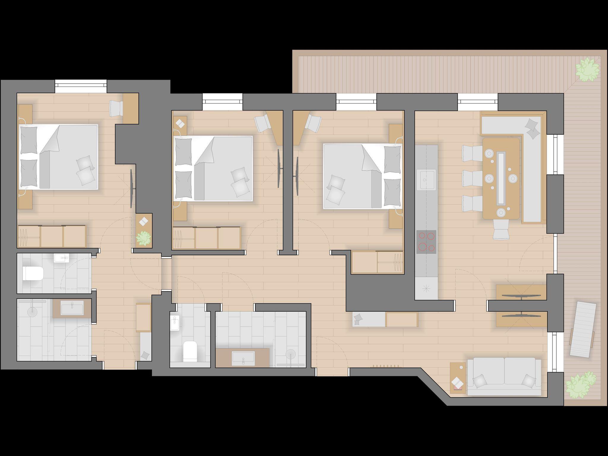 Typ: App. Birnhorn:Genießen Sie gemütliche Stunden in dem neu errichteten Appartement. Heimisches Holz verleiht den Zimmern eine gemütliche Atmosphäre. Unser neues Appartement ist mit einer gut ausgestatteten Wohnküche, Vorraum, Kabel-TV, Safe, WLAN,2-3 getrennte Schlafzimmer , Dusche und WC sind getrennt, Balkon mit Blick ins Tal ausgestattet.