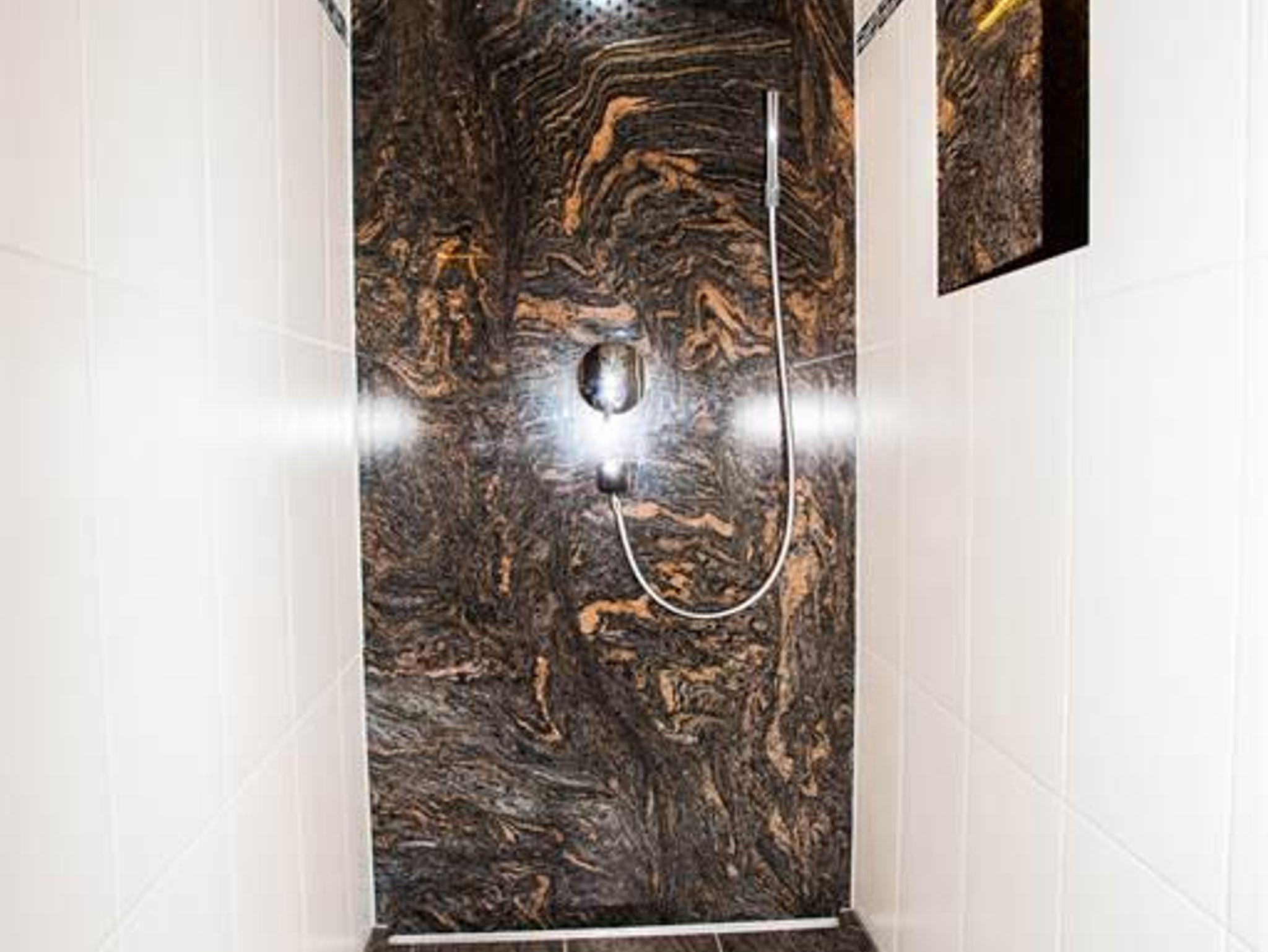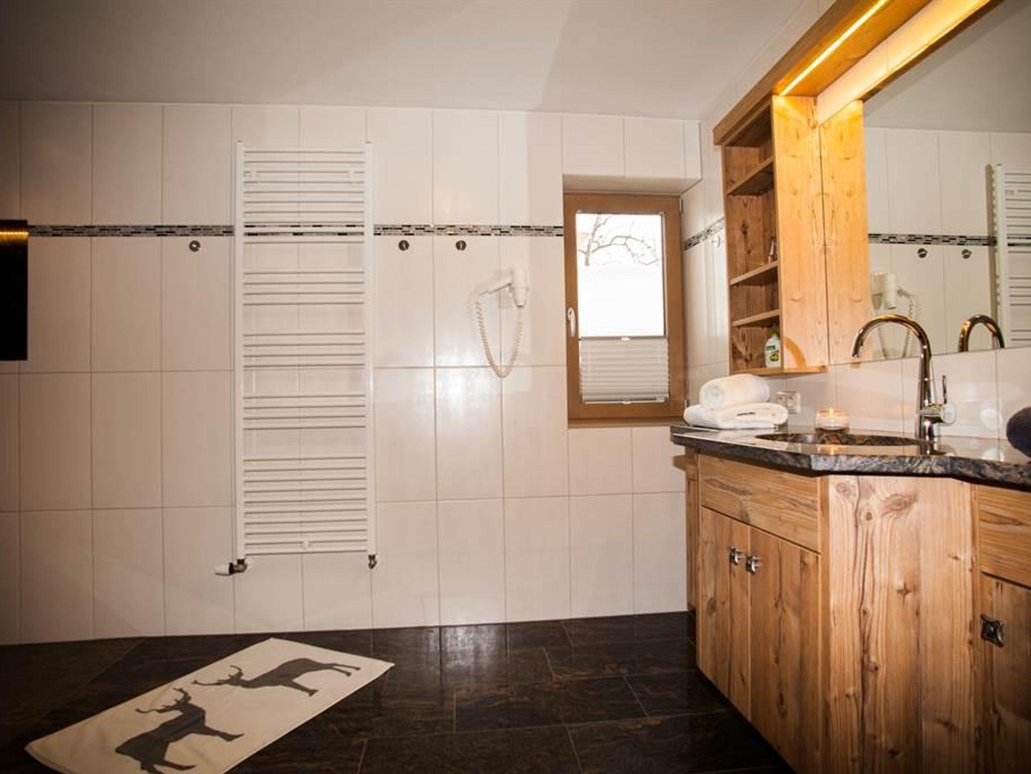 Badezimmer (Schminkspiegel, Haarfön, Hand- und Duschtücher, Badevorleger)