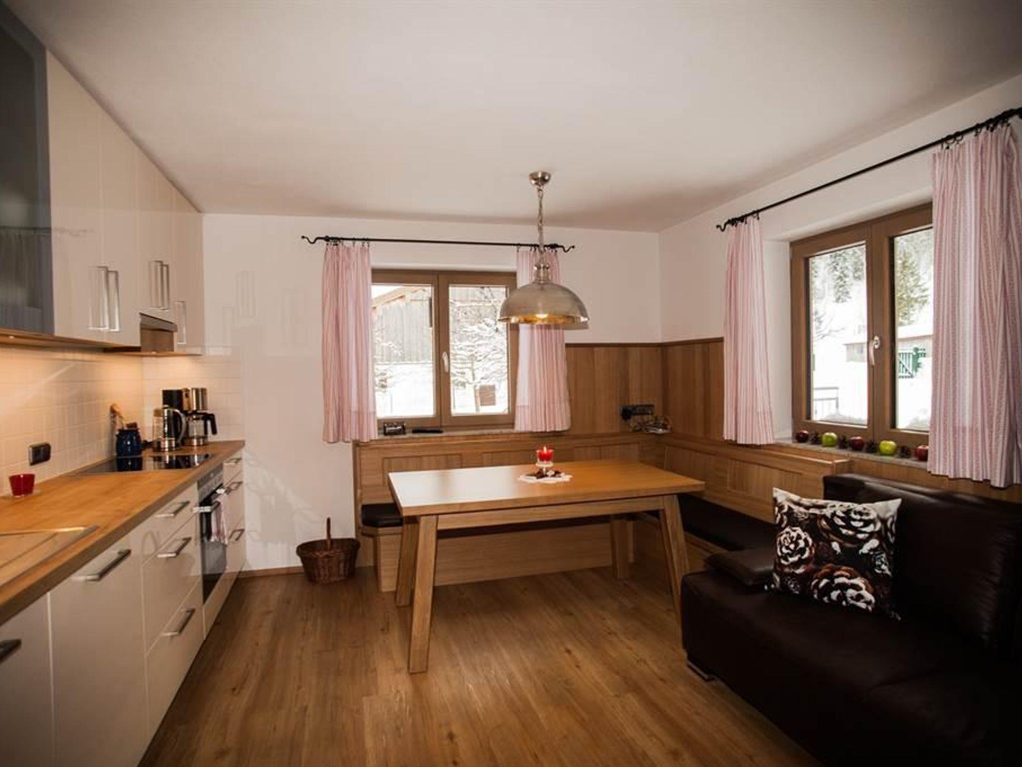 Unser Appartement ist gemütlich, zweckmäßig und mit modernen, praktischen Möbeln eingerichtet. Die Gesamtnutzungsfläche von 80 m² bietet Platz für 2 bis 7 Personen. Unser Appartement befindet sich im Parterre und ist südseitig ausgerichtet. Details Vorraum mit Garderobe und Schuhschrank Gemütlicher Wohn-Essbereich. Ein ausziehbares Sofa bietet Platz zum Schlafen für 2 Personen. Vollausgestattete, moderne Küche mit Geschirrspüler, Ceran-Kochfeld, Backofen, Kaffeemaschine, Wasserkocher, Kühlschrank mit Gefrierfach, komplettes Speise- und Kochgeschirr sowie Gläsersortiment, sämtliche Küchenutensilien, Spülmaschinentabs, Geschirrspülmittel, Geschirrtücher, Besen und Kehrschaufel Badezimmer (Schminkspiegel, Haarfön, Hand- und Duschtücher, Badevorleger) Zwei geräumige Schlafzimmer mit bequemen Doppelbetten sowie einem Einzelbett in einem der Schlafzimmer. Die Räume bieten ausreichend Platz für Ihre Garderobe. (Betten mit Bettwäsche bezogen) Behagliche Fußbodenheizung in allen Räumen Kostenloser W-LAN-Internetzugang sowie digitales TV Trockenraum - Skikeller bzw. abschließbarer Bikeraum Parkplatz direkt vor dem Haus (kostenlos)
