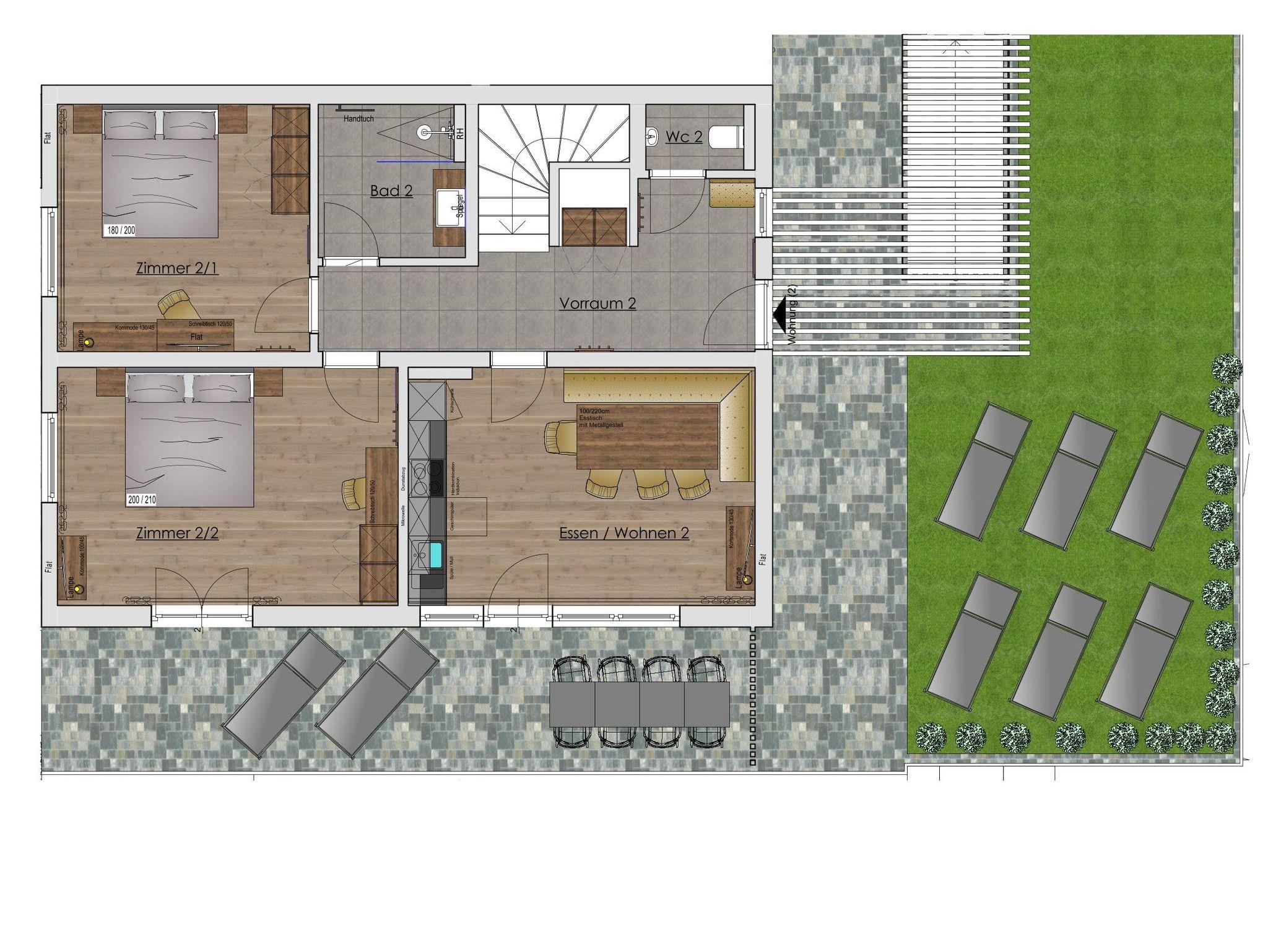 Appartement Top 1 de Luxe, 2 Etagen 134m²:UG: Vorraum mit Garderobe, 1 Schlafzimmer Boxspringbett/ Topper 160/200, 1 Schlafzimmer Boxspringbett/Topper 120/200, 1 Schlafzimmer mit Stockbett (90/200), Bad/Dusche, separates WC, Wohnbereich mit Schlafsofa für 1 Person (140/200), großzügiger Wellnessbereich mit Dusche, sep. WC und Ruhebereich.OG: Vorraum mit Garderobe, 2 Schlafzimmer mit Boxspringbetten/Topper 200/210 und 180/200. Bad/Dusche, separates WC, Küche/Essbereich. Küche ist voll ausgestattet :Herd, Kühlschrank, Kaffeemaschine, Wasserkocher, Mikrowelle, Küchenutensilien. WLA N,TV. Bettwäsche, Handtücher vorhanden. Terrasse/Garten. Absperrbarer Ski- und Fahrradraum. Waschmaschine/Trockner zur allgemeinen kostenfreien Nutzung.