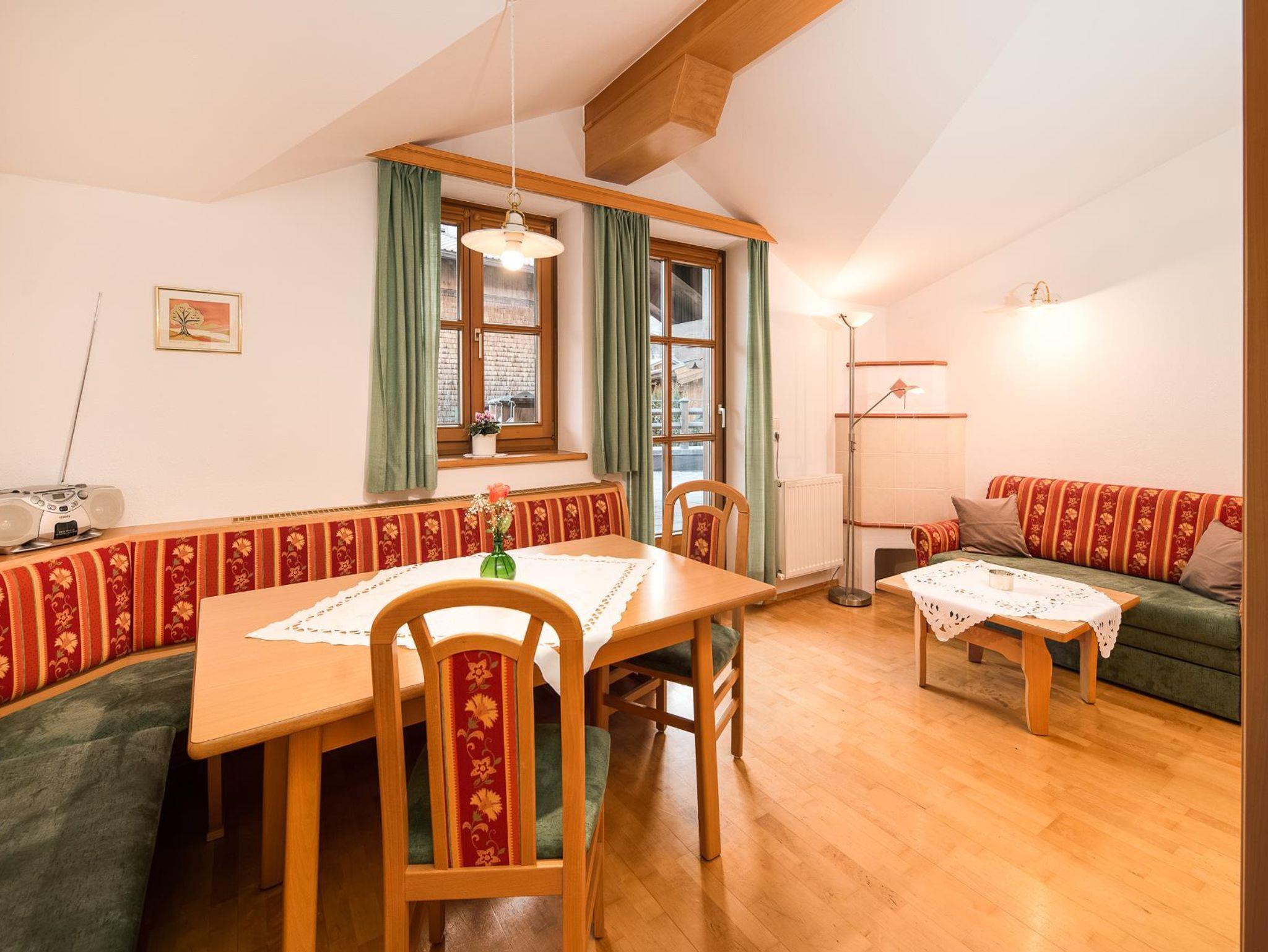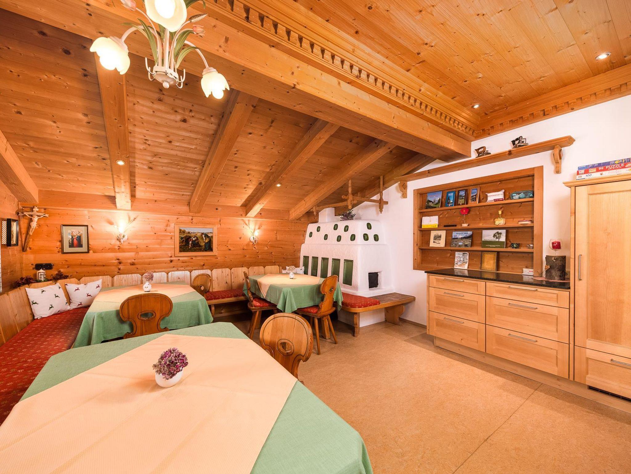 Des Weiteren bietet der große Frühstücks- bzw. Aufenthaltsraum mit gemütlichen Kachelofen eine komplett ausgestattete Gästeküche, die jederzeit benützt werden kann.
