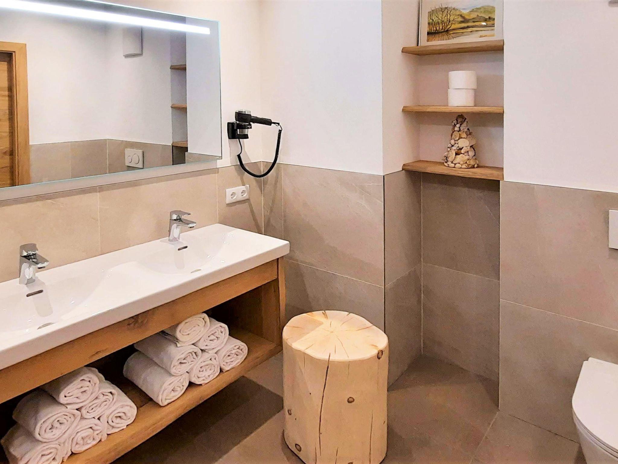 Das Natur Loft FichtenWald hat 3 Schlafzimmer, einen großzügigen Wohn-/Küchenraum im Obergeschoß. Modern aber doch im alpinen Stil. Im Haus gibt es nur zwei Lofts. 85 m2 gemütliches Ambiente auf 2 Etagen. Viel natürliches Holz, Betten aus massiver Eiche und ein perfekter Ausblick auf die Leogangner Steinberge. Gemütliches Bad.