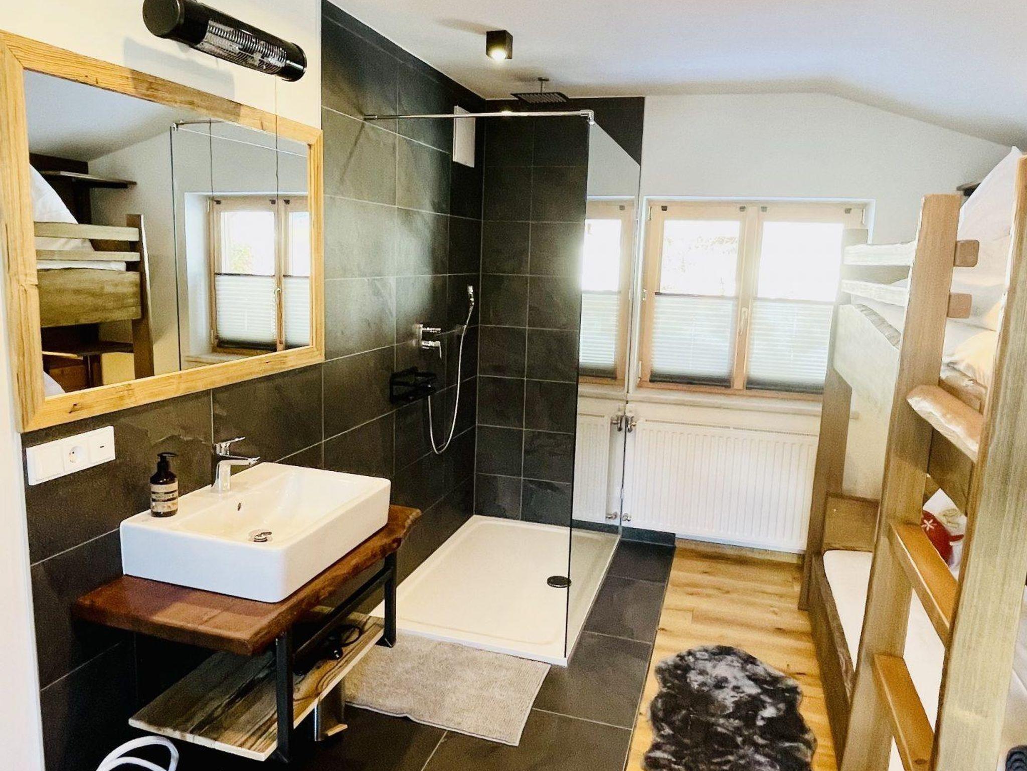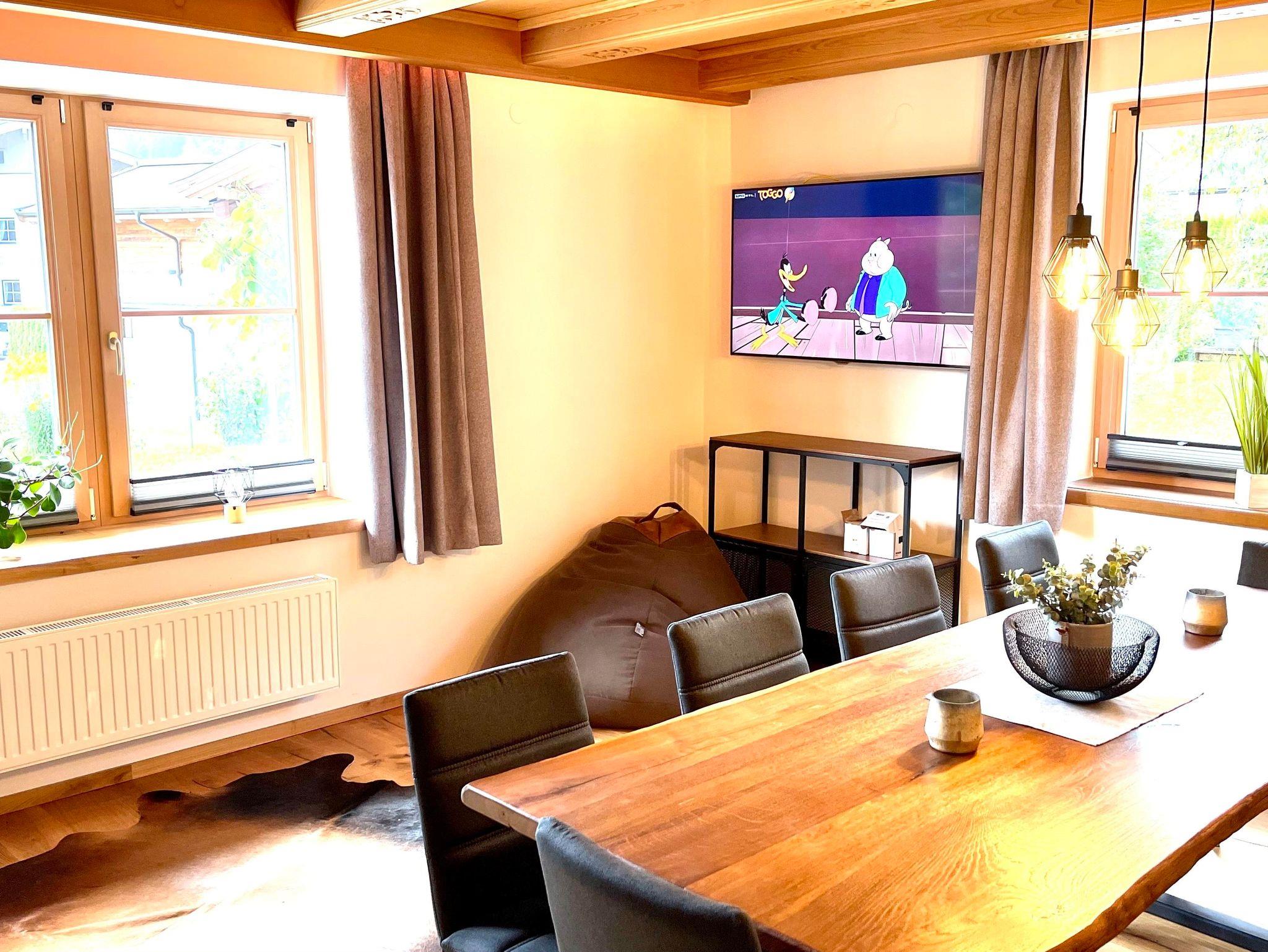 • Wohnzimmer „De Stubn“ mit chilliger Bank & großem Tisch, inkl. Kuschel-Sofa (optional für 2 Personen)
