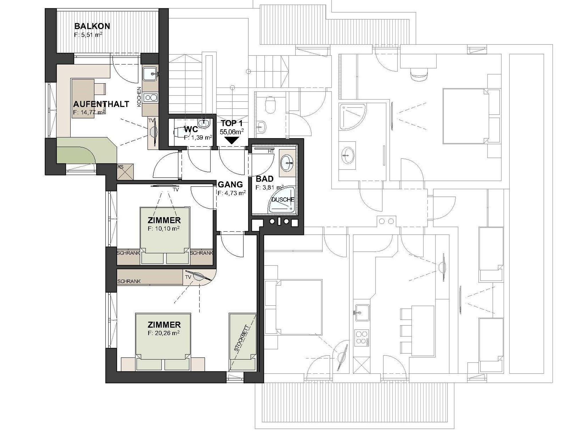 Geräumiges und rustikal eingerichtetes Doppel- bzw. Dreibettzimmer mit Balkon, Kabel-TV, W-Lan, Safe, Haarföhn, großzügiger DU/WC Raum