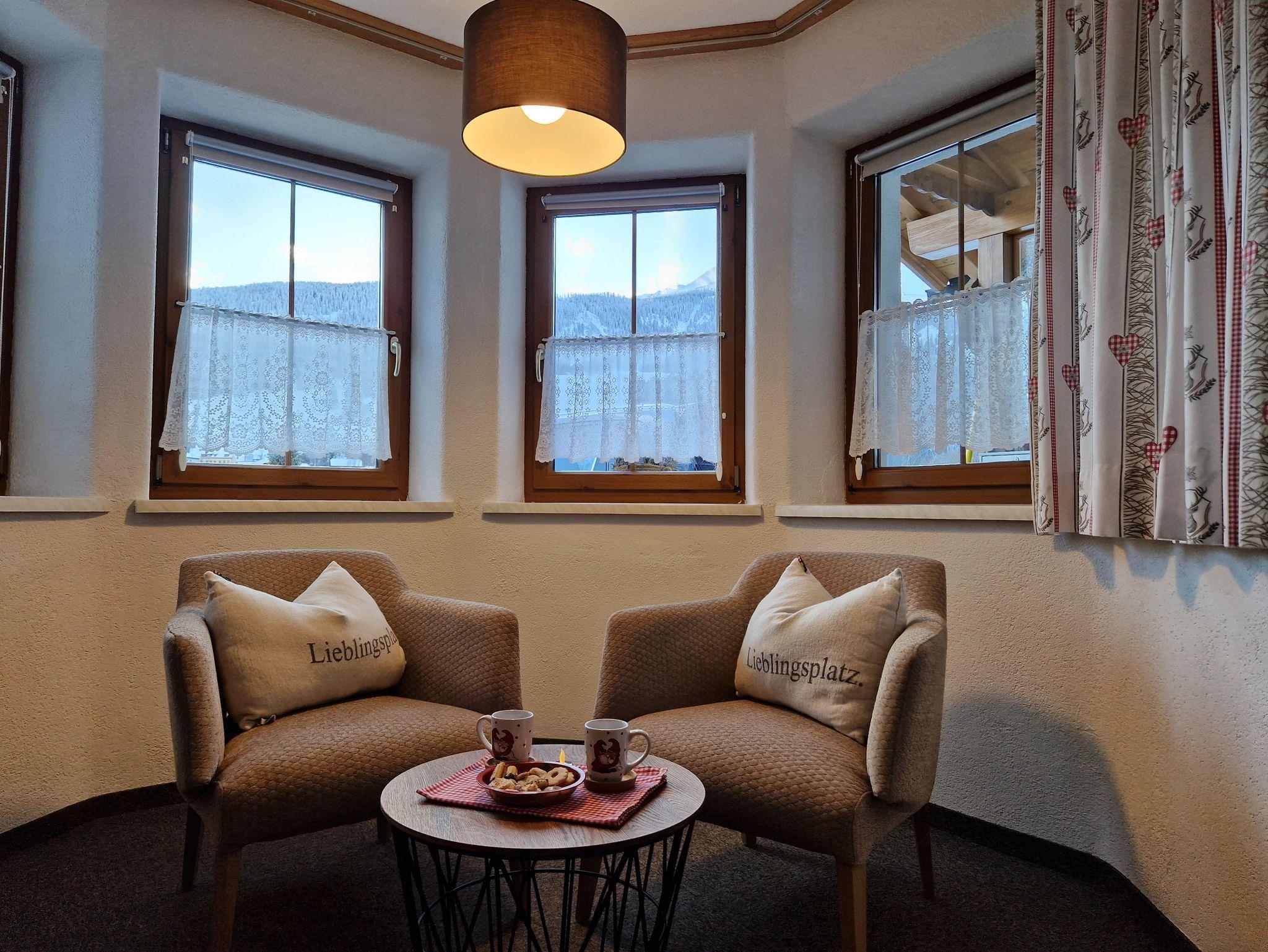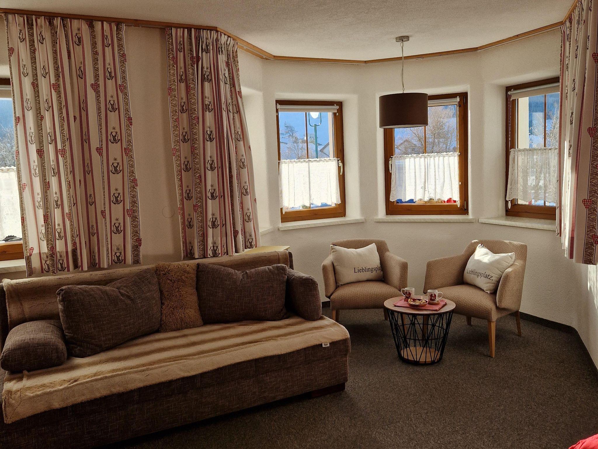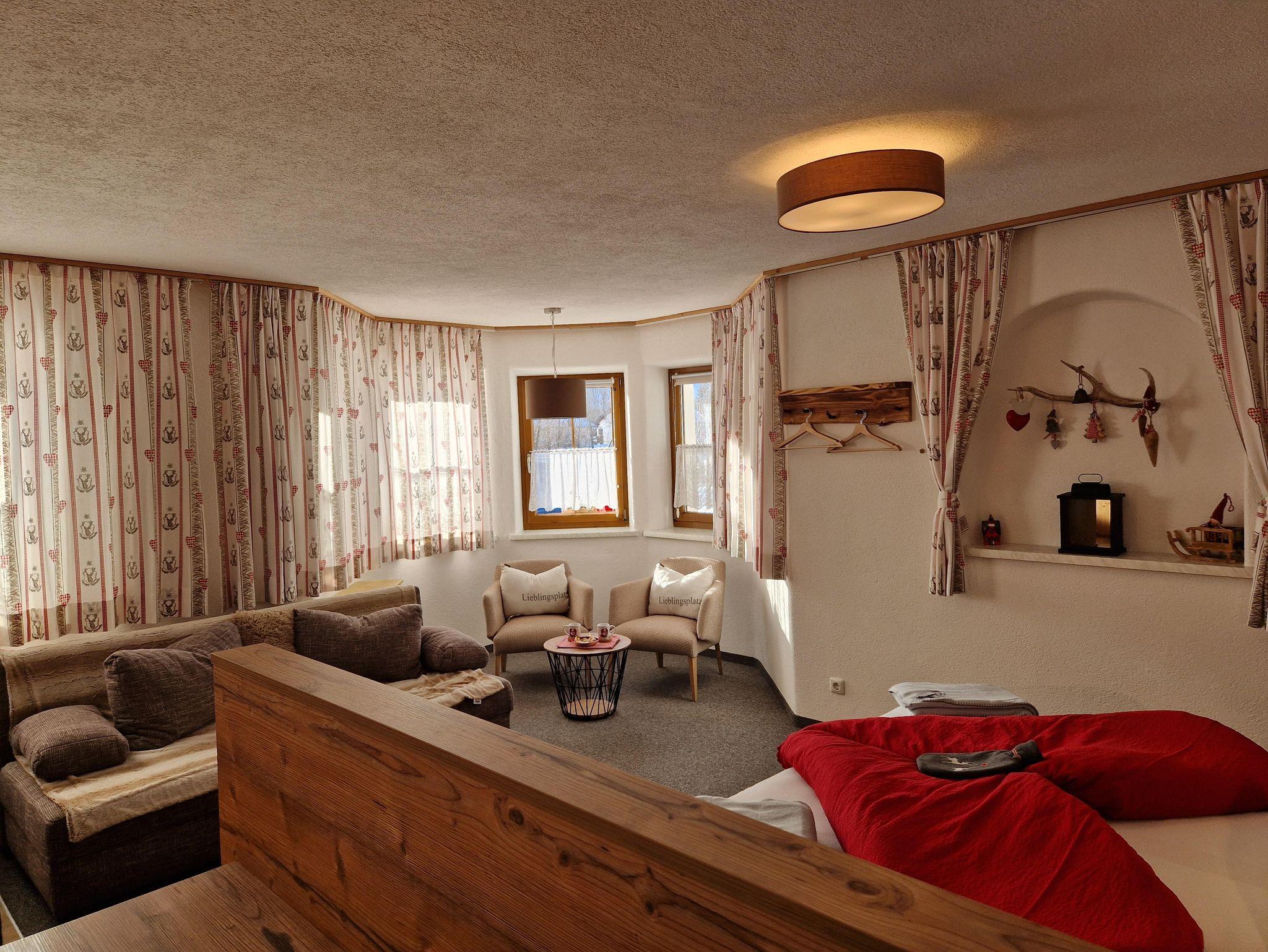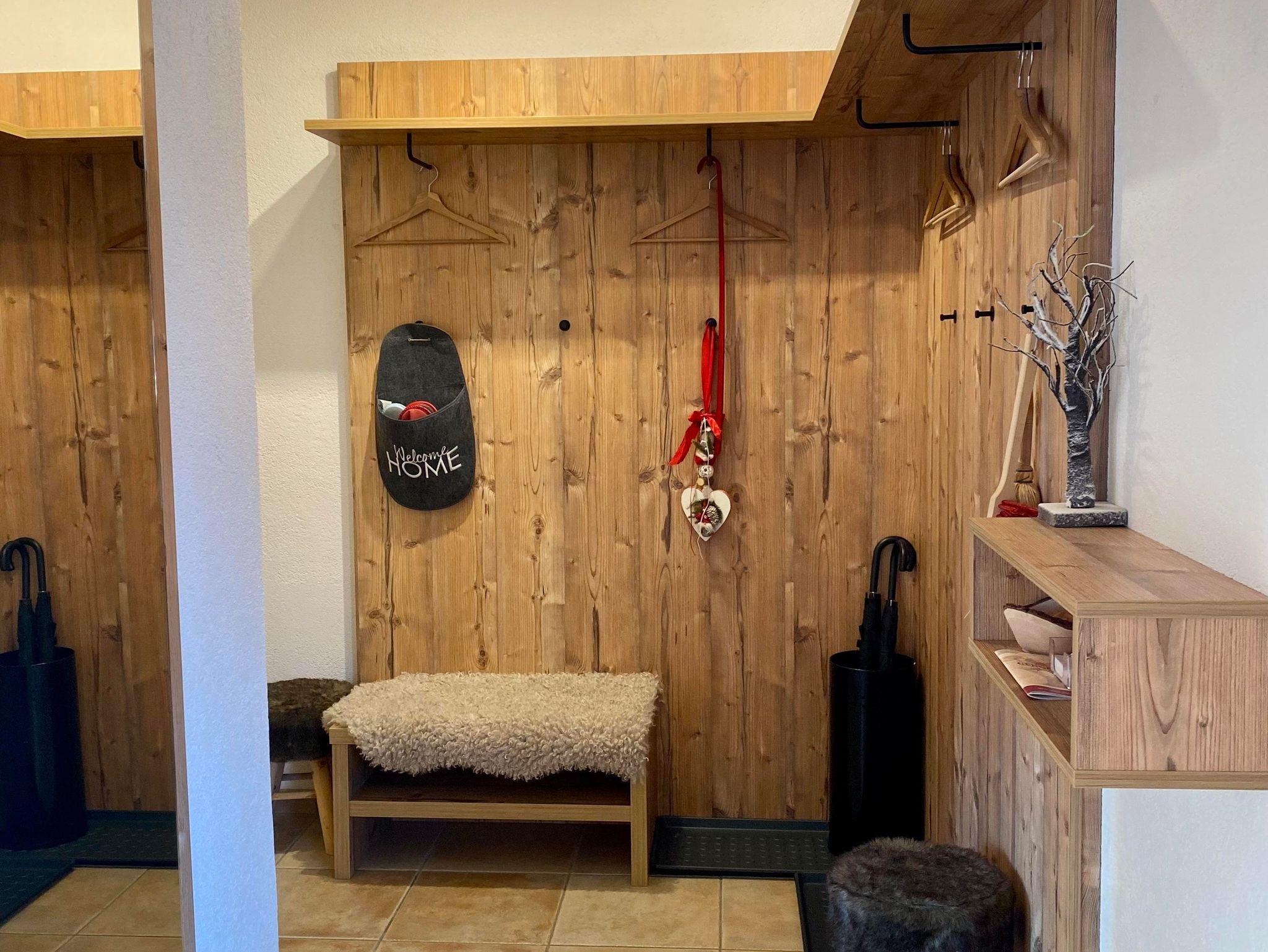 Ebenerdig gelangen Sie zur 45m² Wohnung. Mit eigenem Eingang, Hausgang (Diele) mit Garderobe und Skiabstellplatz-Skischuhtrockenplatz, Vorraum, 1 großer Wohn-Schlafraum mit gemütlichem Ercker und Küche, DU/WC. Sonnen am windgeschützten - ausblickfreien Vorplatz. Supermarkt M-Preis/Bäckerei und Bushaltestelle (gratis Skibus direkt zur Gondel) befinden sich in 80 m Entfernung. Es sind nur wenige Minuten ins Zentrum und zu den Skiliften. Für Langläufer befindet sich der Loipeneinstieg direkt beim Haus.