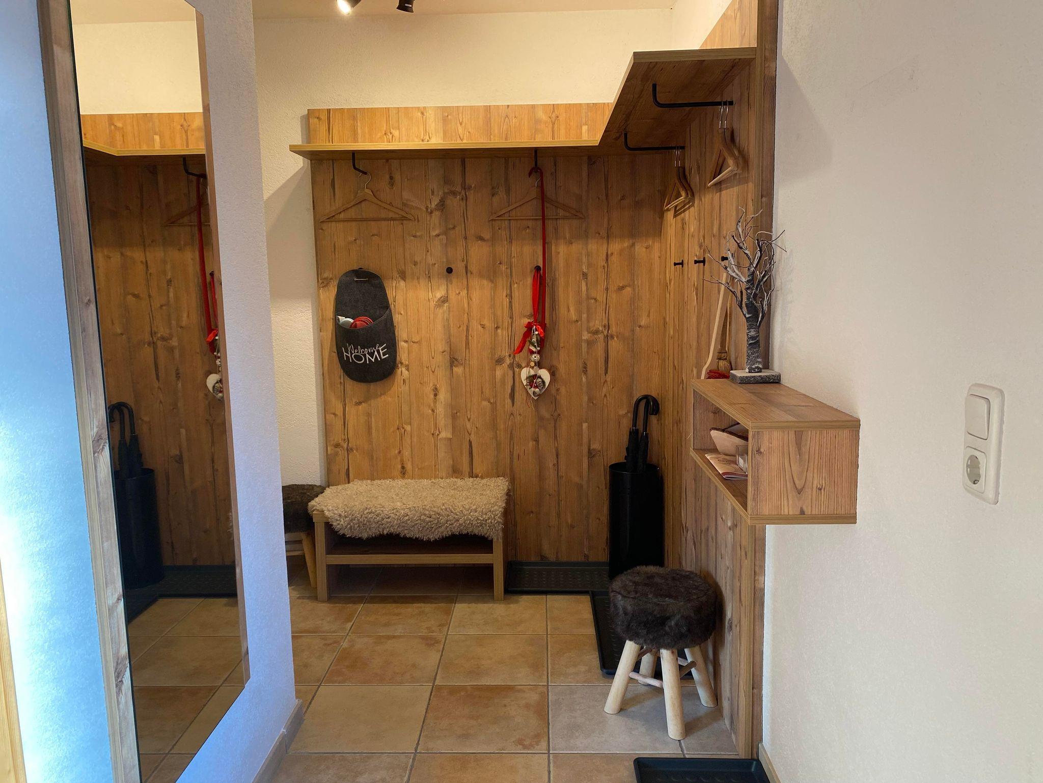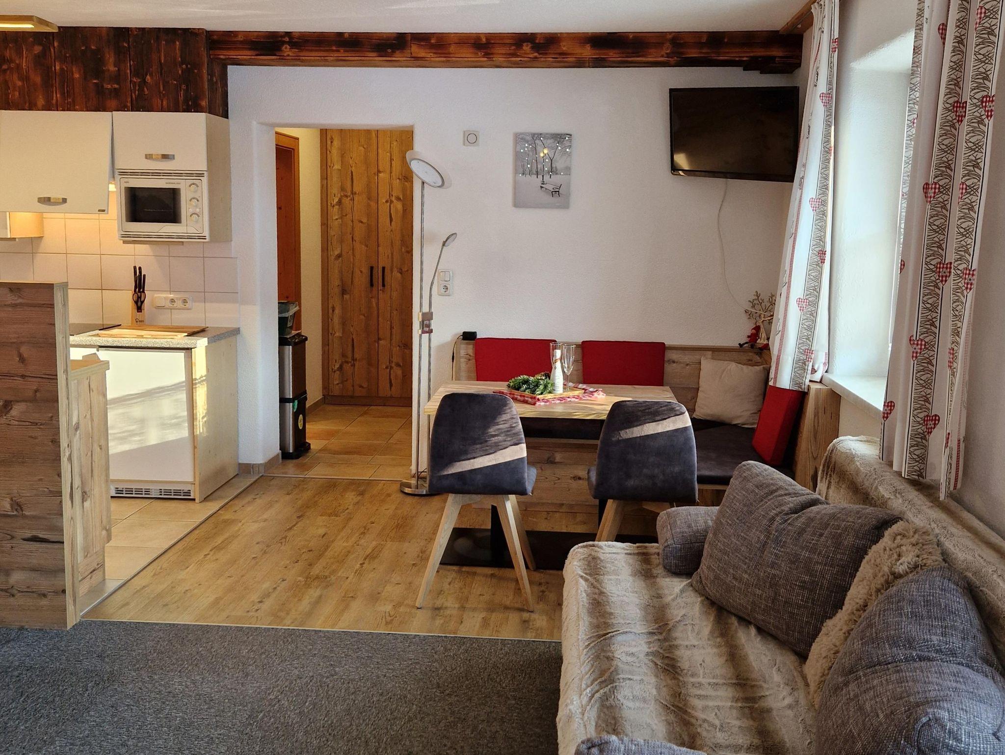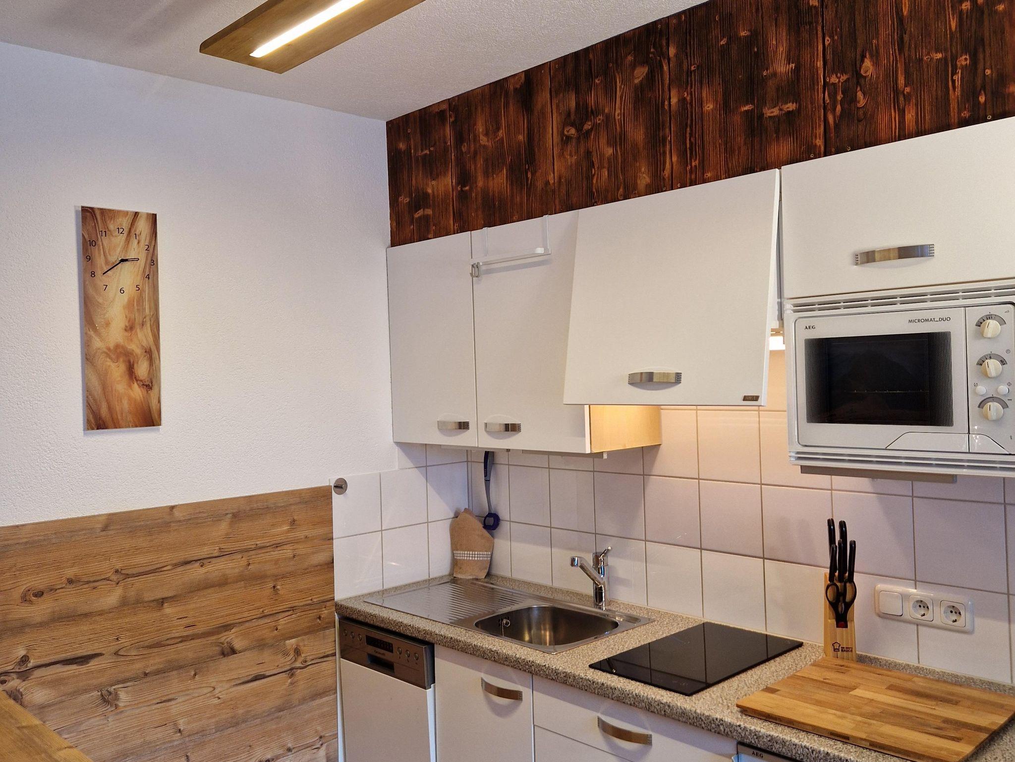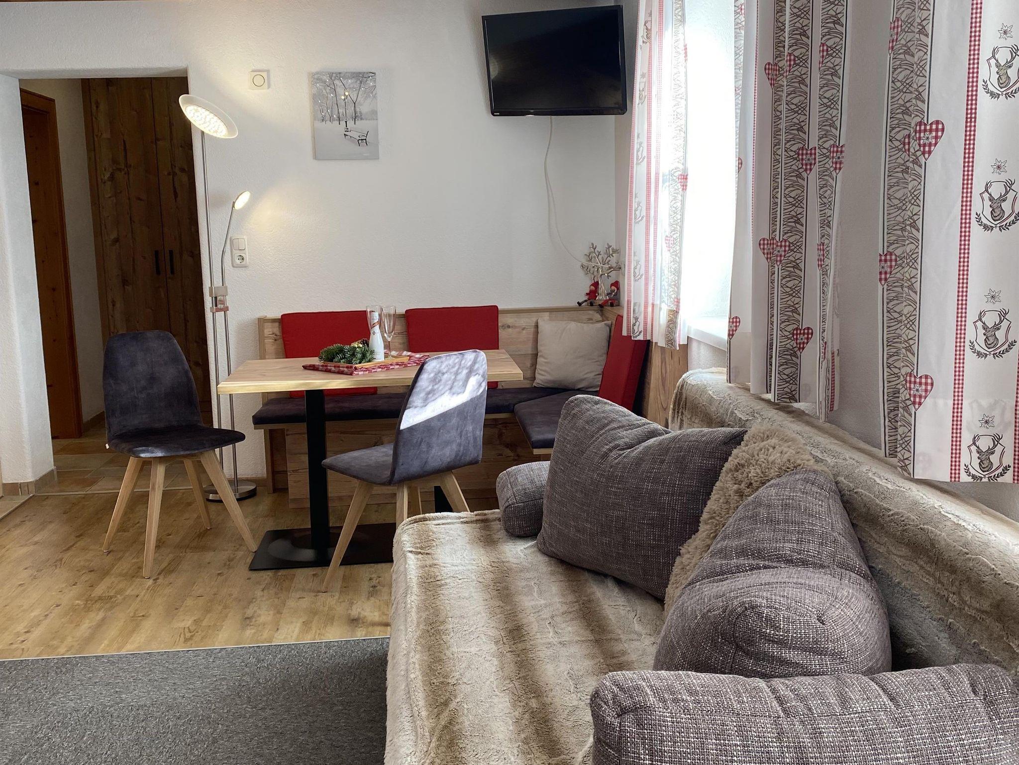 Ebenerdig gelangen Sie zur 45m² Wohnung. Mit eigenem Eingang, Hausgang (Diele) mit Garderobe und Skiabstellplatz-Skischuhtrockenplatz, Vorraum, 1 großer Wohn-Schlafraum mit gemütlichem Ercker und Küche, DU/WC. Sonnen am windgeschützten - ausblickfreien Vorplatz. Supermarkt M-Preis/Bäckerei und Bushaltestelle (gratis Skibus direkt zur Gondel) befinden sich in 80 m Entfernung. Es sind nur wenige Minuten ins Zentrum und zu den Skiliften. Für Langläufer befindet sich der Loipeneinstieg direkt beim Haus.