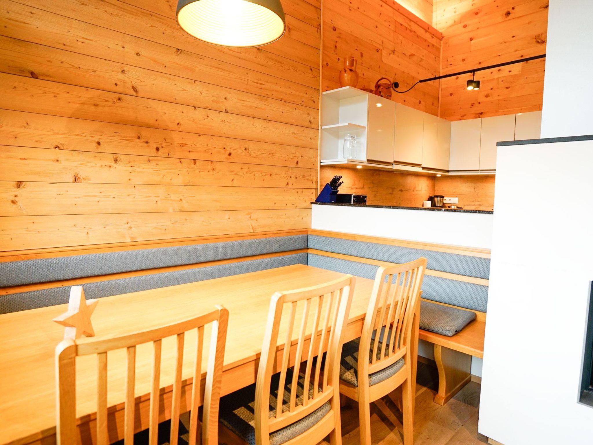 Auf insgesamt 132 m² Wohnfläche ist Platz für bis zu sieben Personen. Hochwertige Möbel, teils aus duftendem Zirbenholz, sowie die harmonische Wandverkleidung schaffen eine wohltuende Umgebung für entspannte Urlaubstage.