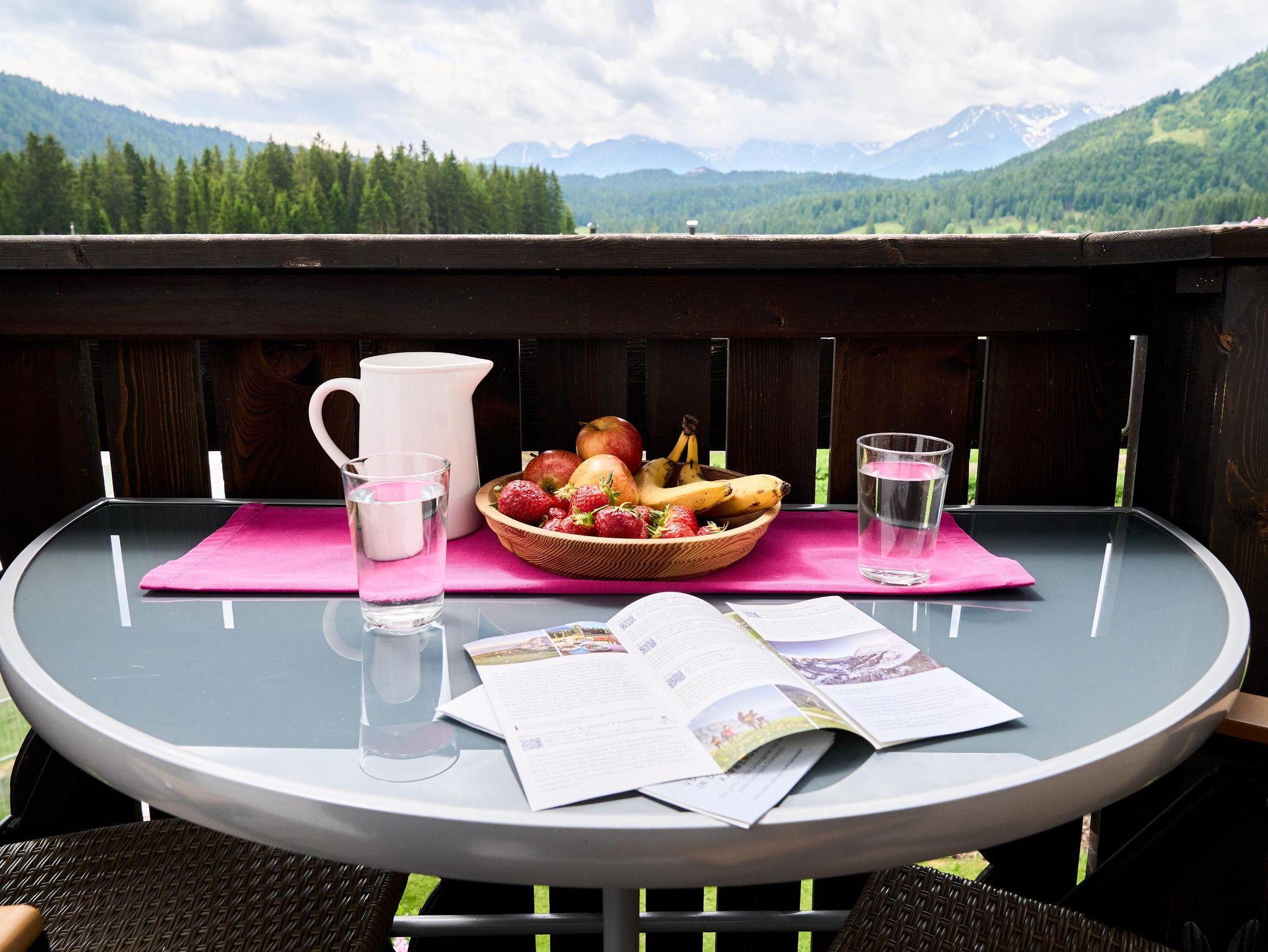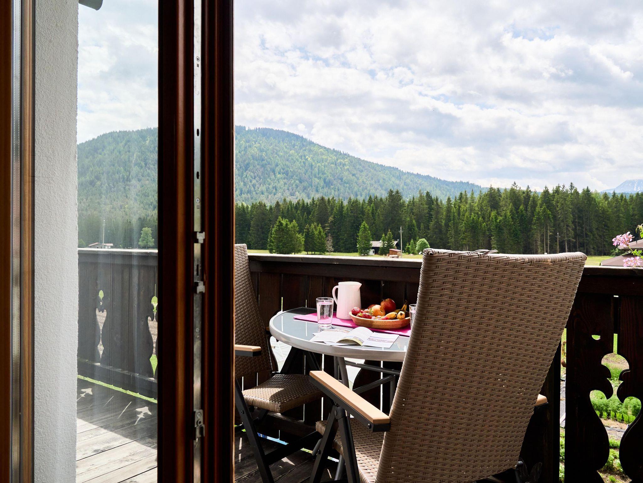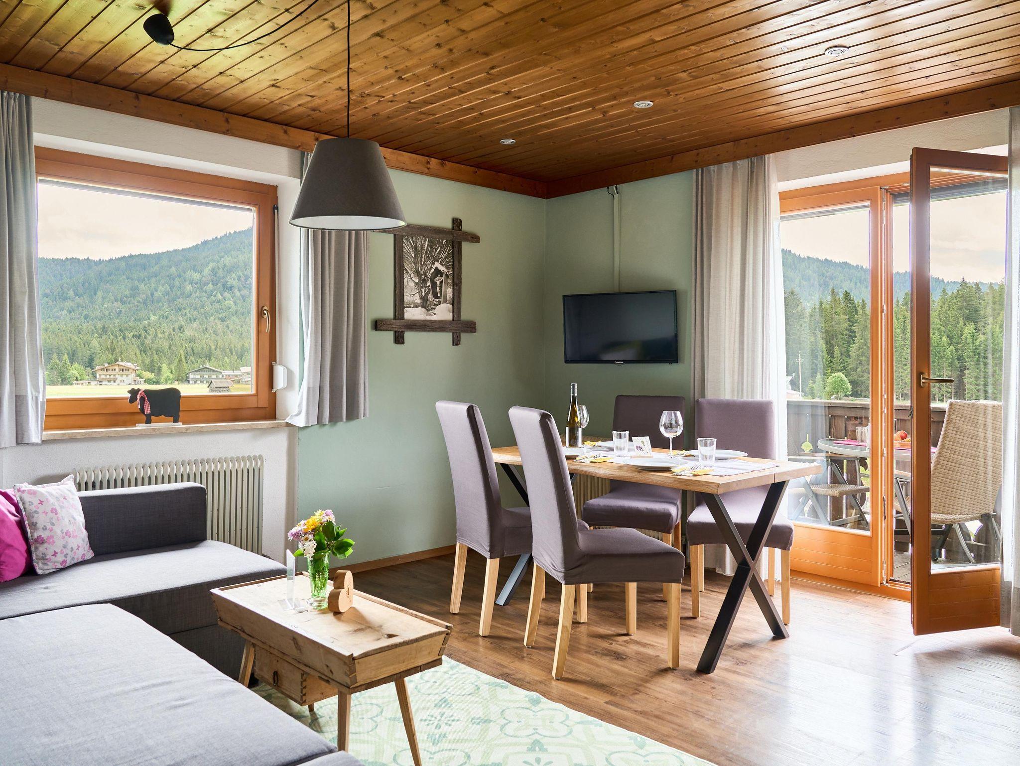Die Ferienwohnung Karwendel lädt Sie zu einem erholsamen Aufenthalt ein! Sie bietet zwei gemütliche Schlafzimmer – eines mit einem Doppelbett und eines mit einem Stockbett – sowie ein einladendes Wohnzimmer mit Schlafcouch. Die voll ausgestattete Küche mit Geschirrspüler lässt keine Wünsche offen. Ein besonderes Highlight sind die beiden Balkone mit Ausrichtung nach Süden und Osten, die Ihnen herrliche Ausblicke bieten.