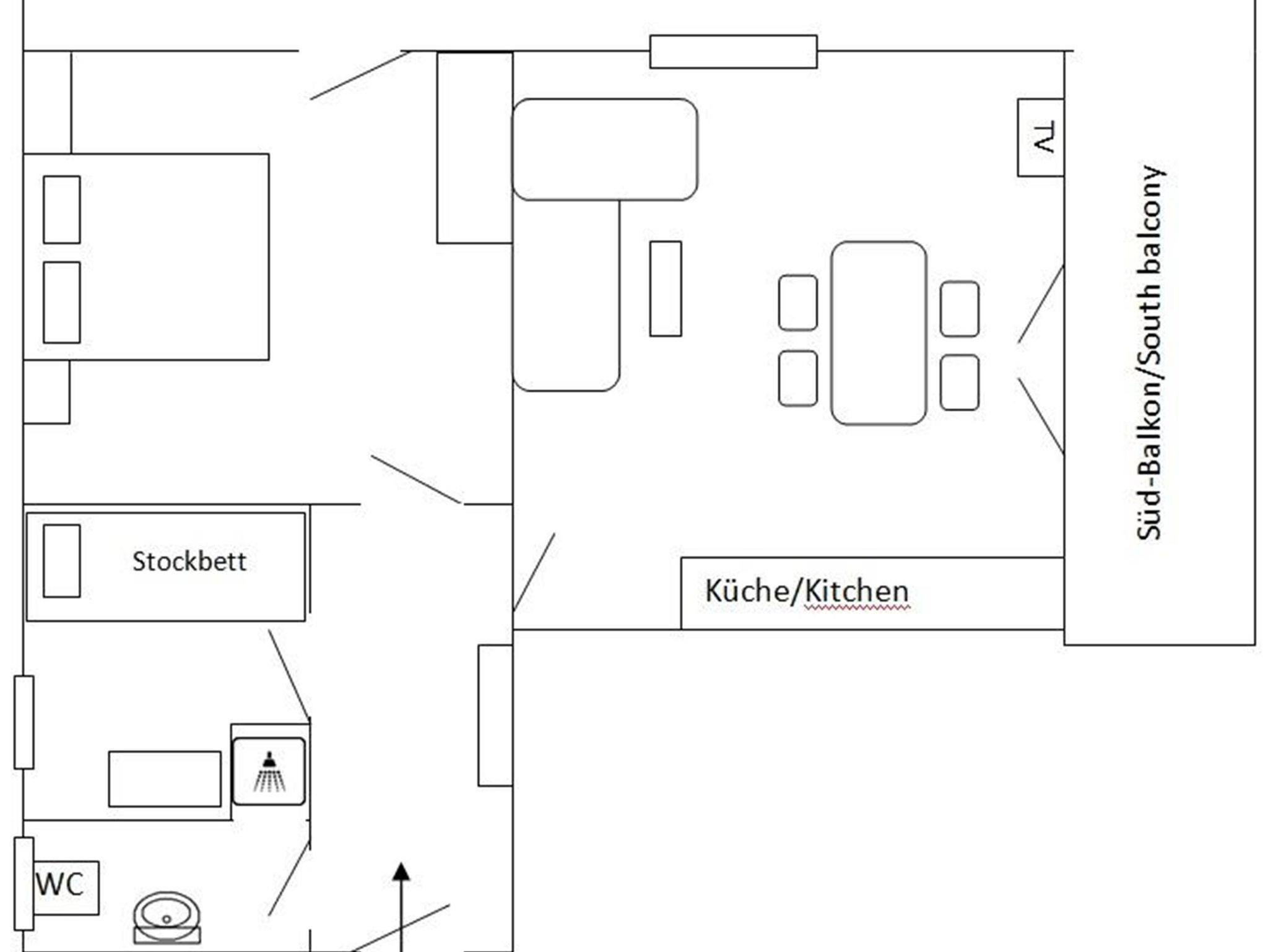 Die Wohnung ist ca. 60 m² groß und bietet Platz für bis zu 6 Personen.