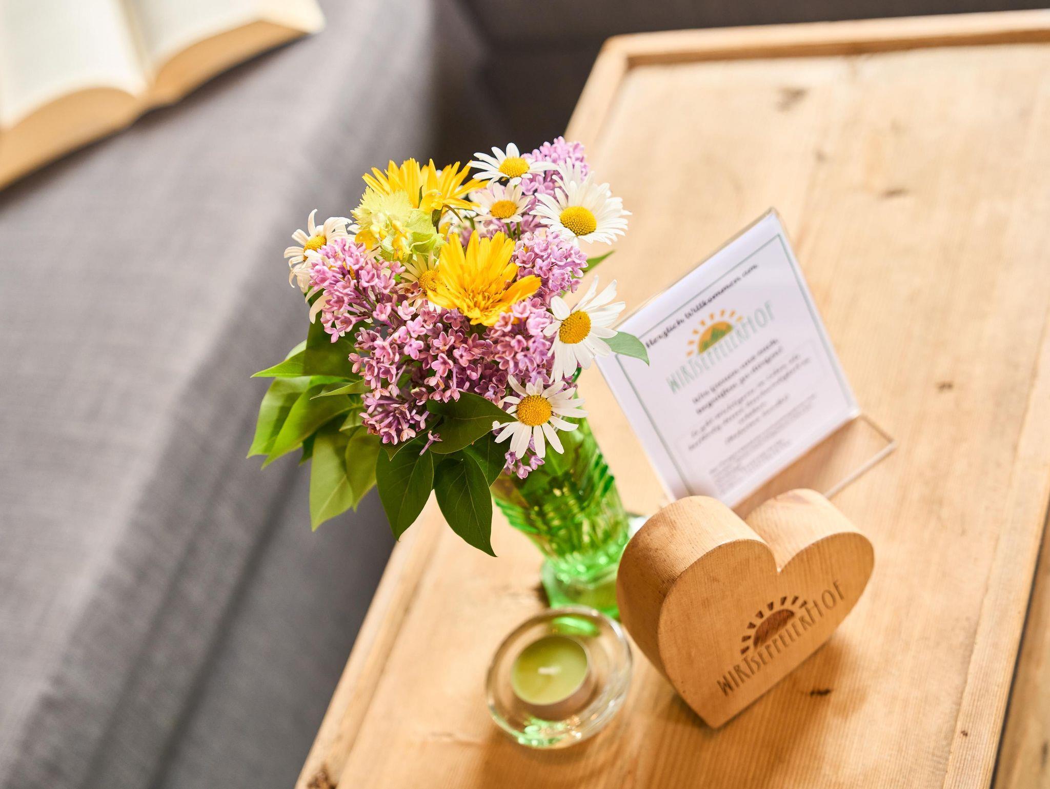 Von Wiesen und Feldern umgeben ist unser Hof mit seiner sonnigen Lage der perfekte Erholungsort für unsere Gäste und ein Abenteuerspielplatz für Kinder, der seinesgleichen sucht. Ob Toben auf dem kleinen Spielplatz vor dem Haus, auf Tuchfühlung gehen mit unseren Kühen und Hasen oder aufbrechen zu einer aufregenden Bergtour – bei uns ist für jeden etwas dabei.
