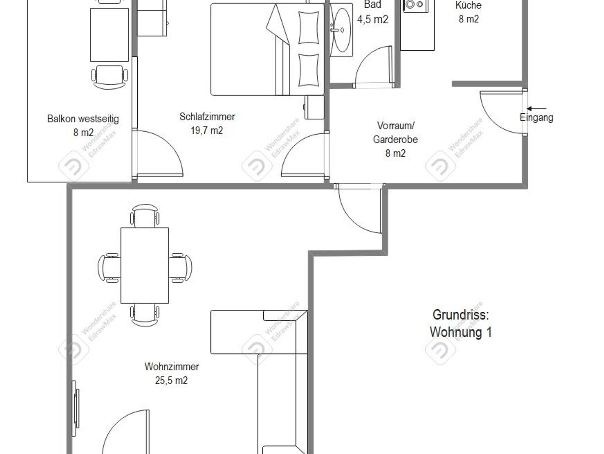 Die Ferienwohnung verfügt über Schlafzimmer, Wohnzimmer, Küche, Bad sowie 2 Balkone.