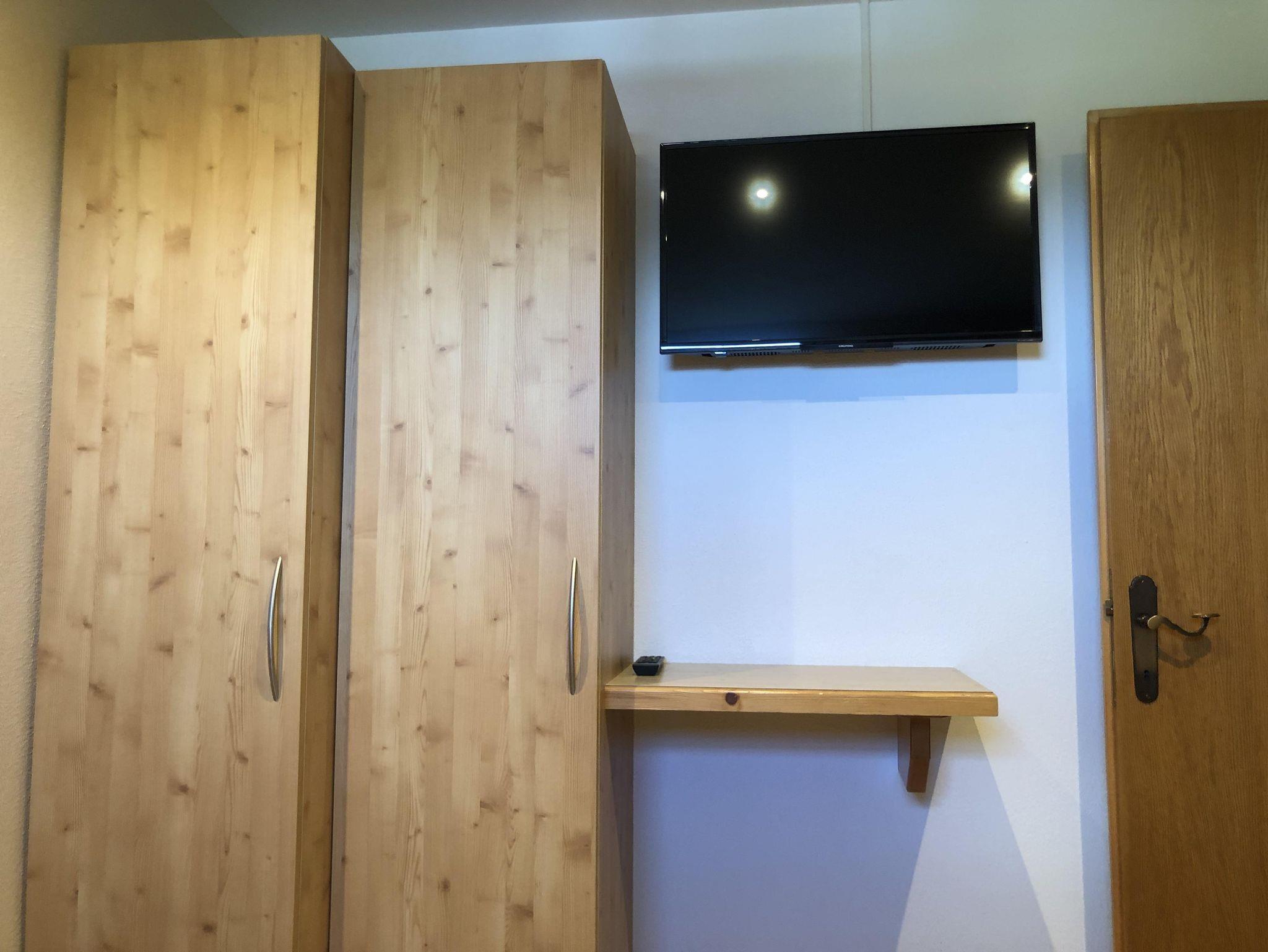 Im II. Stock mit Südbalkon, 45 m2 - 2 Schlafzimmer. Wohnraum mit Küchenzeile (inkl. Vierplattenherd, Geschirrspüler, Mikrowelle, Kaffeemaschine, Toaster, Wasserwärmer, Mini-Backofen), SAT-TV, Schlafzimmer mit Doppelbett, kleines Schlafzimmer mit zwei Einzelbetten und SAT-TV, DU/WC. Keine Teppichböden. Überdachter Autoabstellplatz nach Verfügbarkeit. Maximalbelegung 2 Erwachsene und 2 Kinder oder 3 Erwachsene.