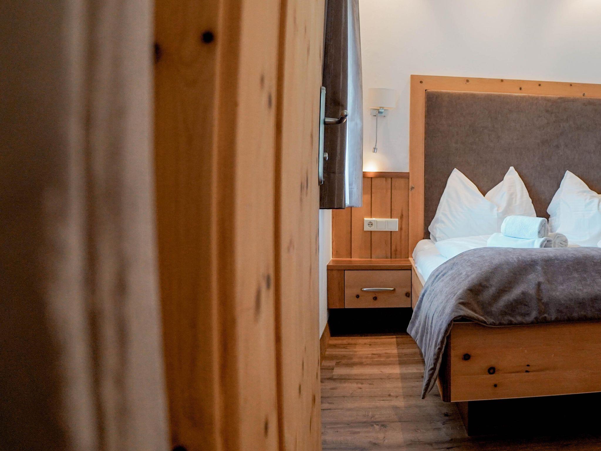 Das Schlafzimmer besteht aus Zirbenholz u. Gesundheitsmatratzen. Zirbenholz verbessert das Raumklima u. hat positive Wirkung auf stressgeplate Gemüter. Zudem wird eine bessere Schlafqualität geschaffen, die Herzfrequenz wird reduziert und der Wetterfühligkeit wird kein Platz mehr gelassen.