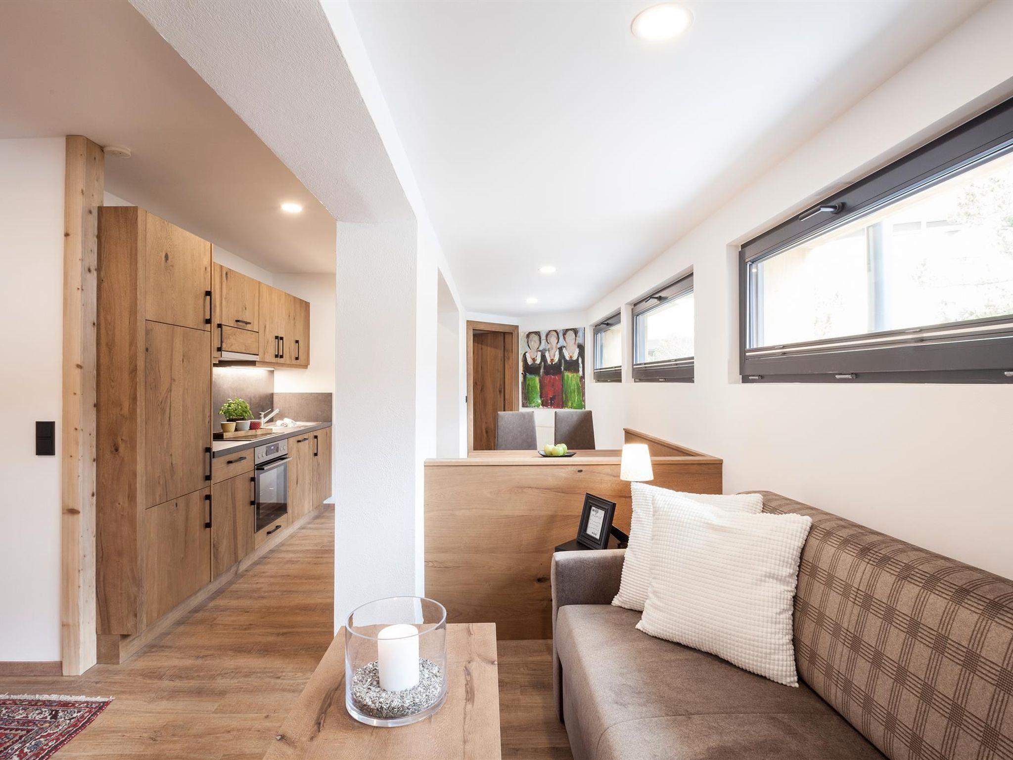 Charmant eingerichtet bietet das Appartement Daniela eine Küche mit einem Esstisch und gemütlicher Eckbank. Sie finden eine einen geschmackvoll eingerichteten Wohnraum, sowie 2 großzügige Schlafzimmer.