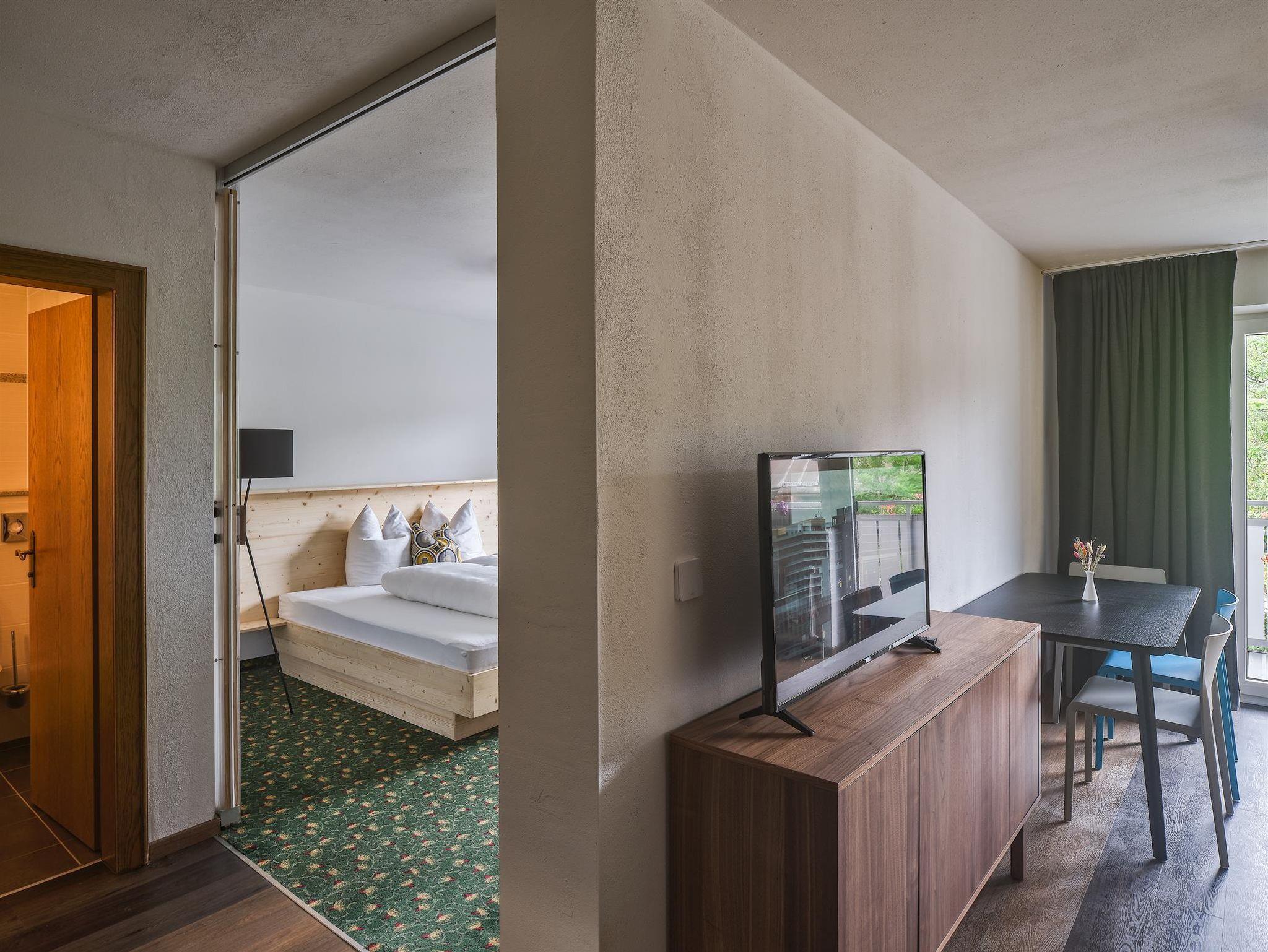 Hübsches, gemütliches Apartment mit 44 m2, Westbalkon mit Blick auf die Hohe Munde. 1 Schlafzimmer, 1 Wohnzimmer mit Schlafcouch, 2 Bäder.