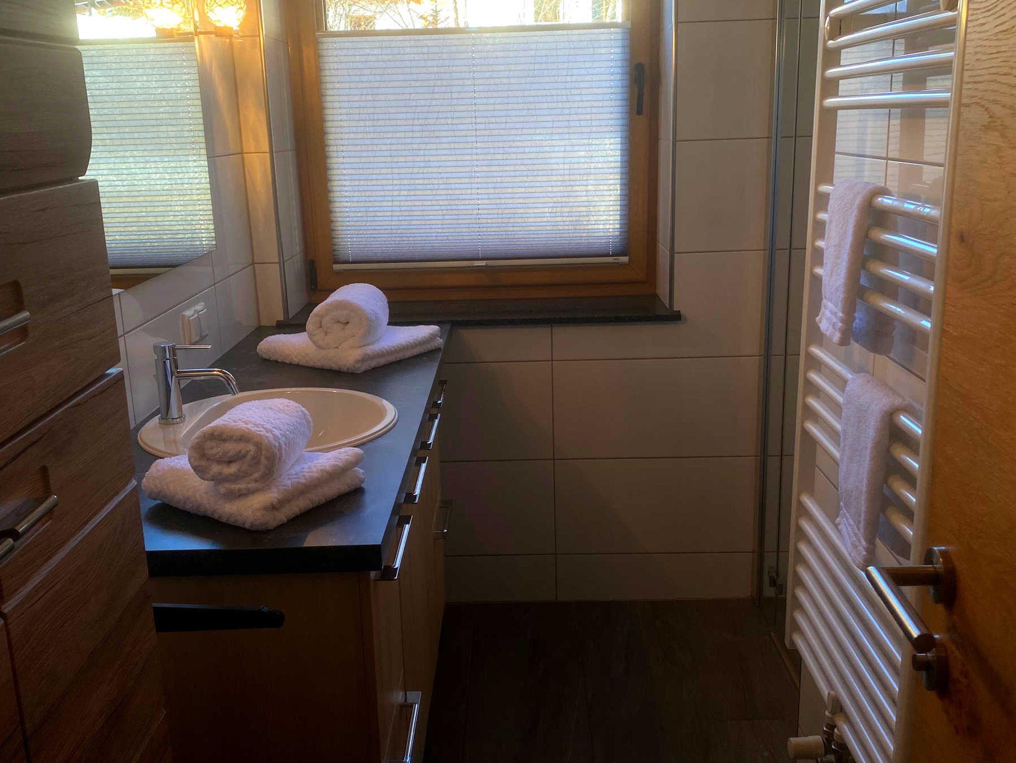 - 1 gemütlichen Badezimmer (4,74 m2) mit Dusche & Handtuchtrockner