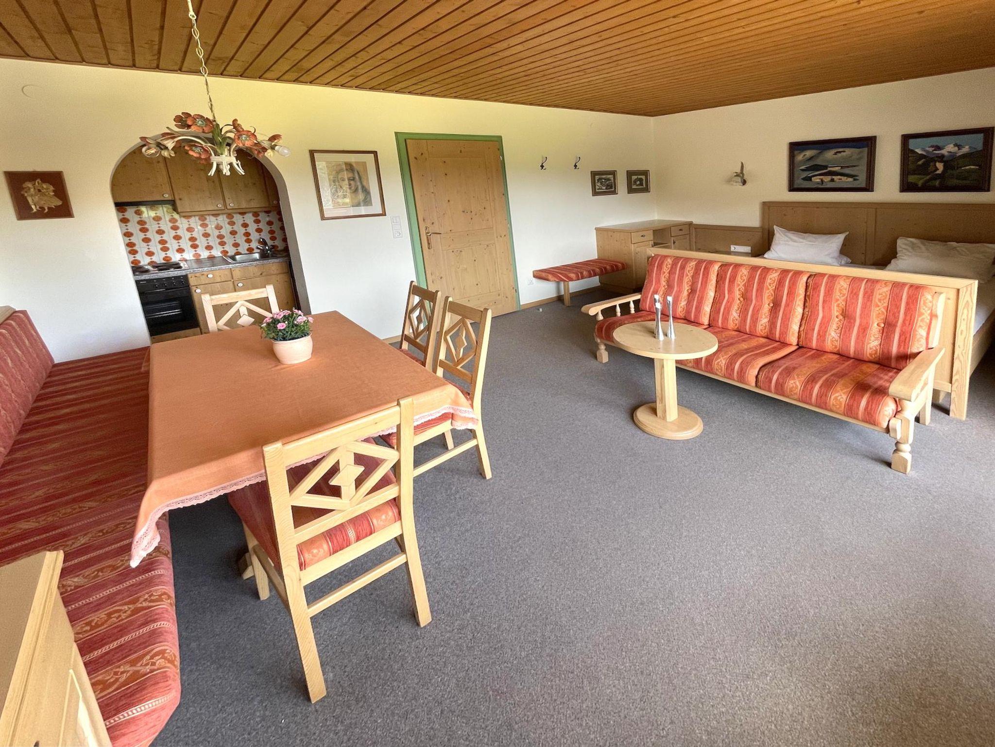 54 m², 1 Schlafzimmer, 1 Wohn-Schlafzimmer, Küche, Dusche/WC, Südbalkon, Südterrasse