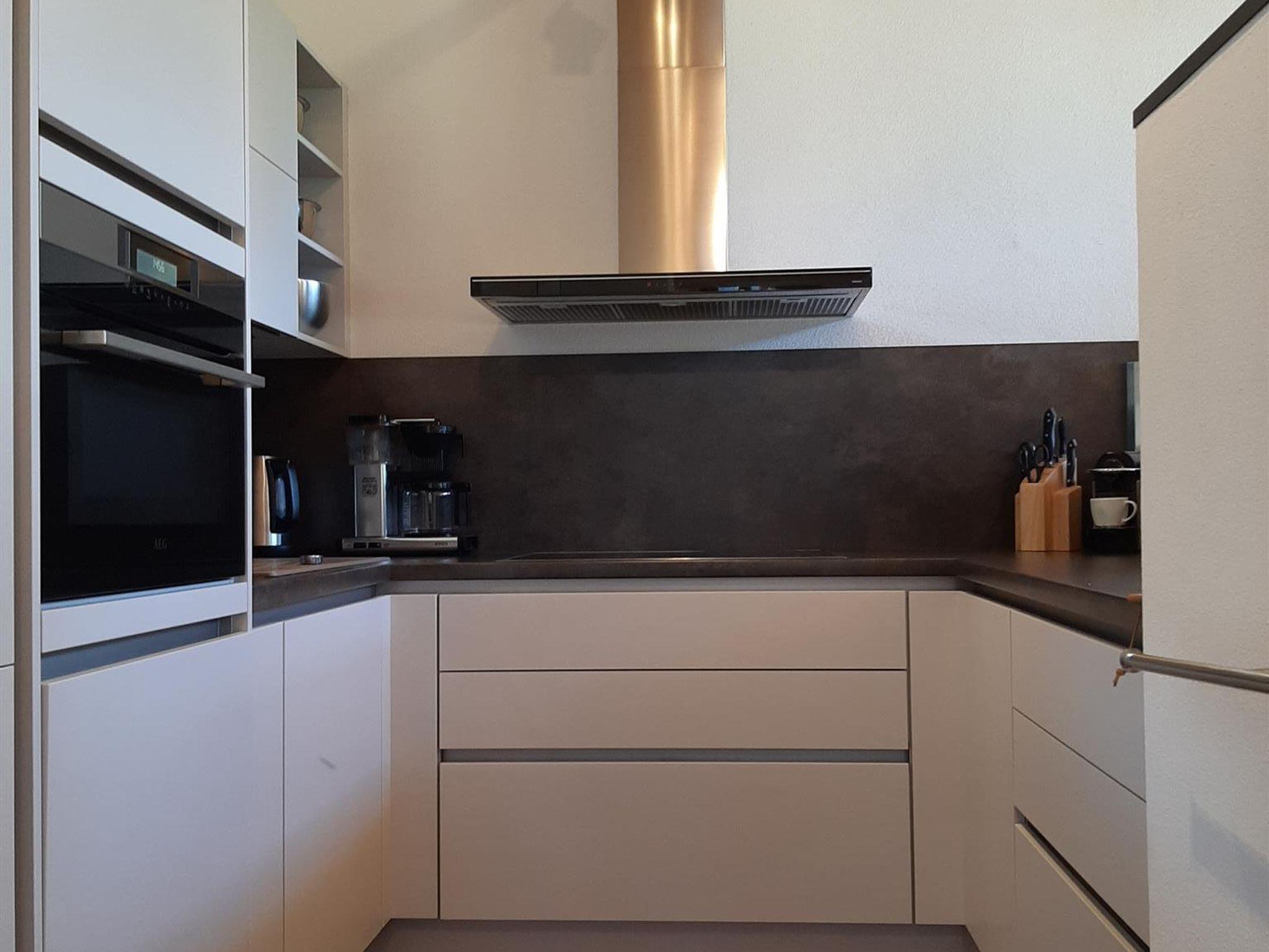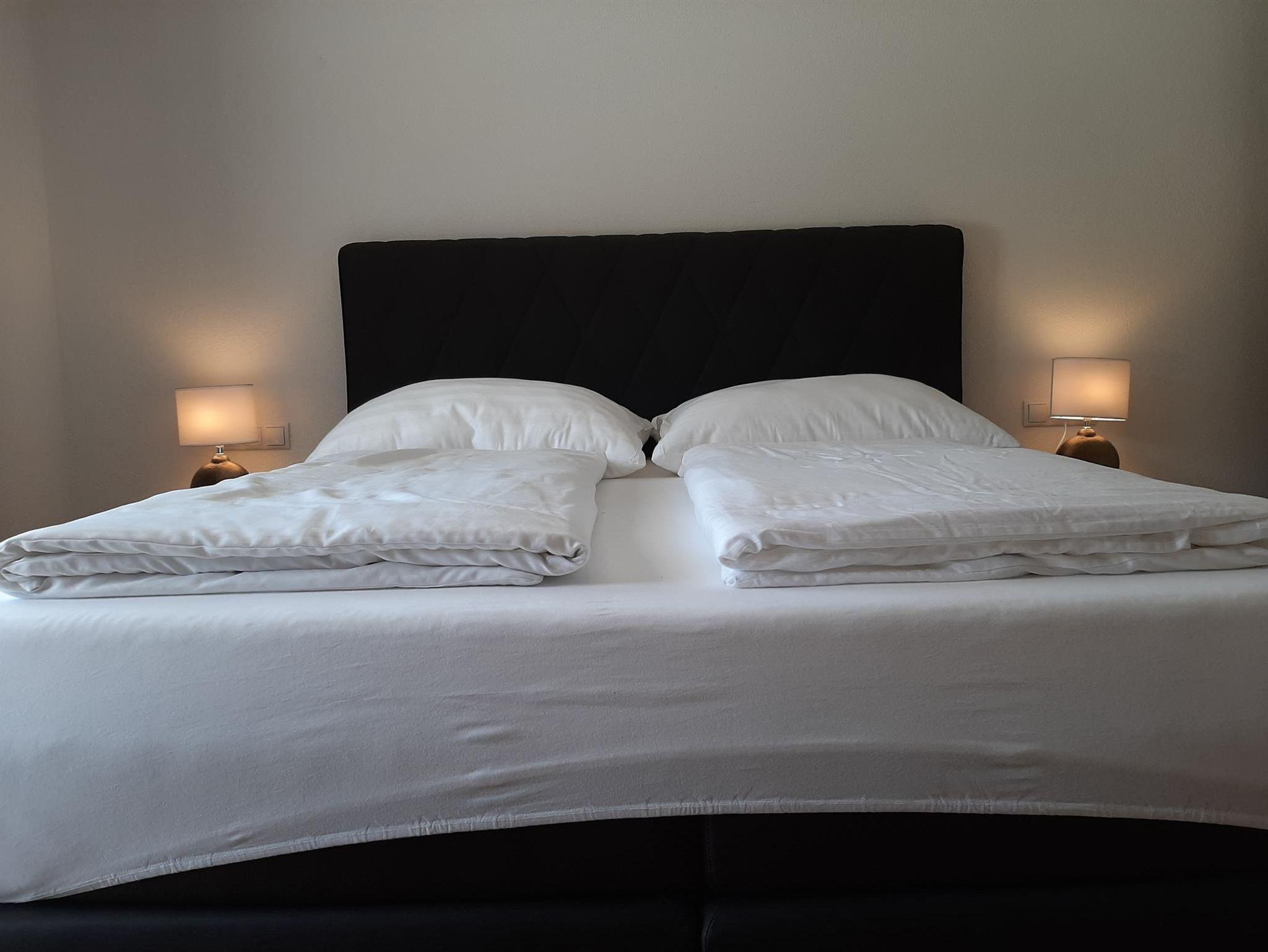 Im Herzstück der Wohnung, befindet sich ein Schlafzimmer für 4 Personen, ein Badezimmer sowie ein geräumiges Wohnzimmer mit voll ausgestatteter Wohnküche. Der Balkon bietet einen wundervollen Ausblick über die angrenzenden Felder.