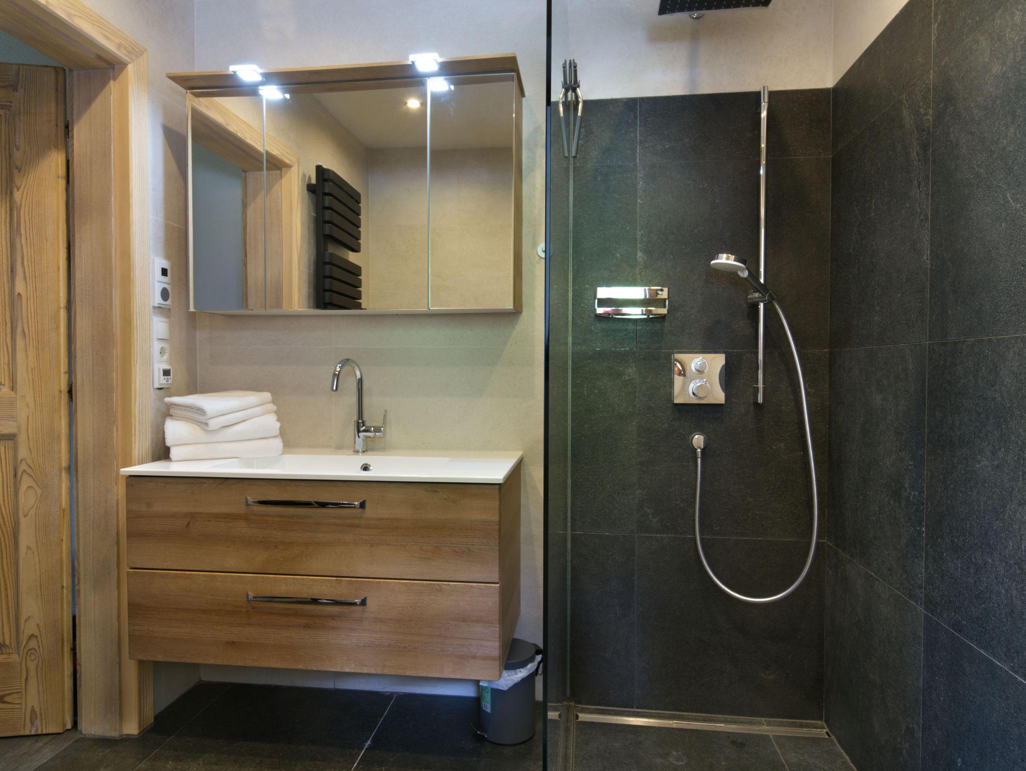Parterrewohnung, neue, moderne freundliche Ausstattung im Tiroler Stil, komplette Wohnküche mit Geschirrspüler, sehr geräumiges Schlafzimmer, barrierefreie Duche, Bad mit Fußbodenheizung und Handtuchtrockner.