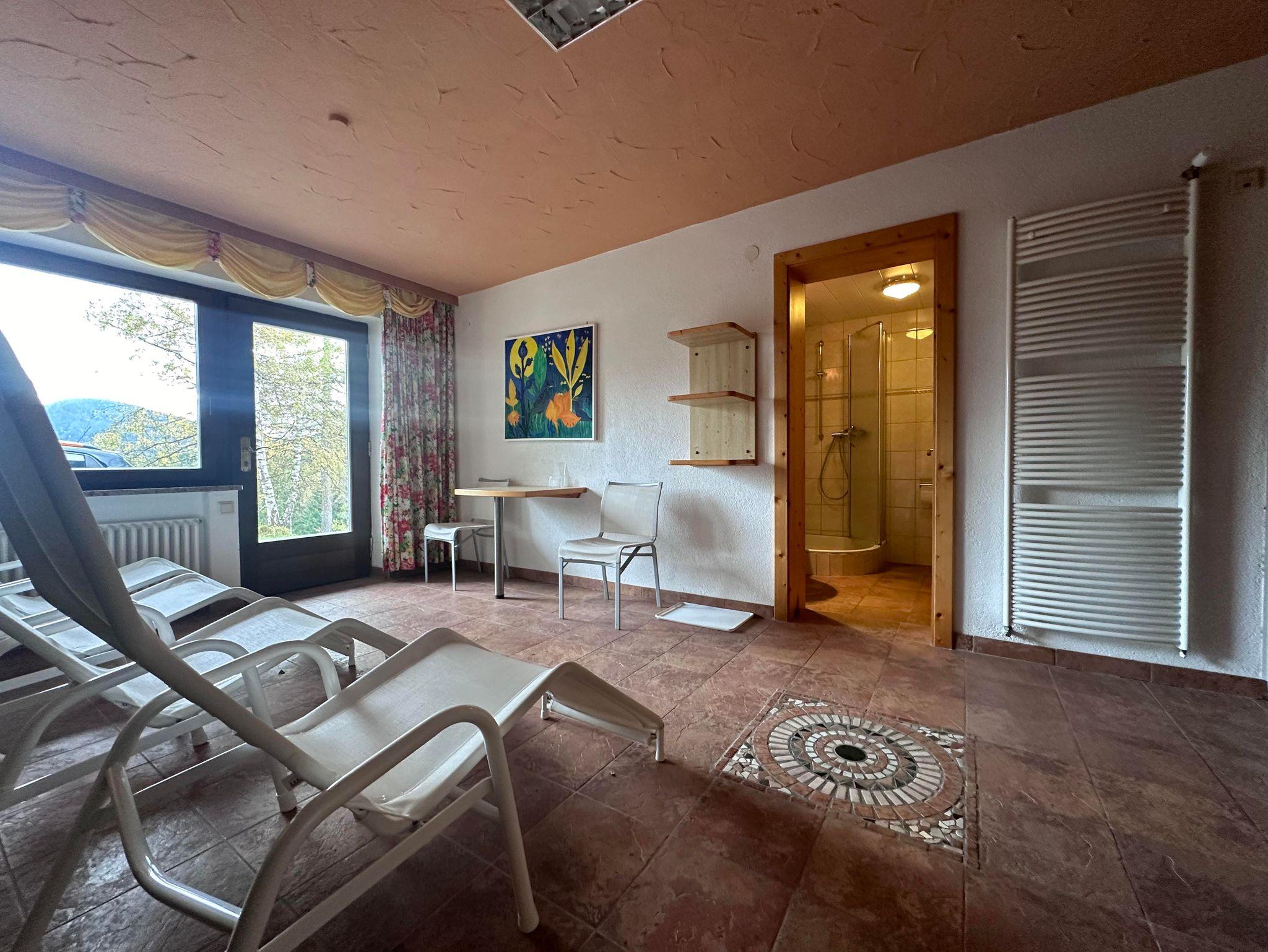 45 m², 1 Schlafzimmer, 1 Wohnzimmer, 1 Küche, Dusche/WC, Südterrasse;