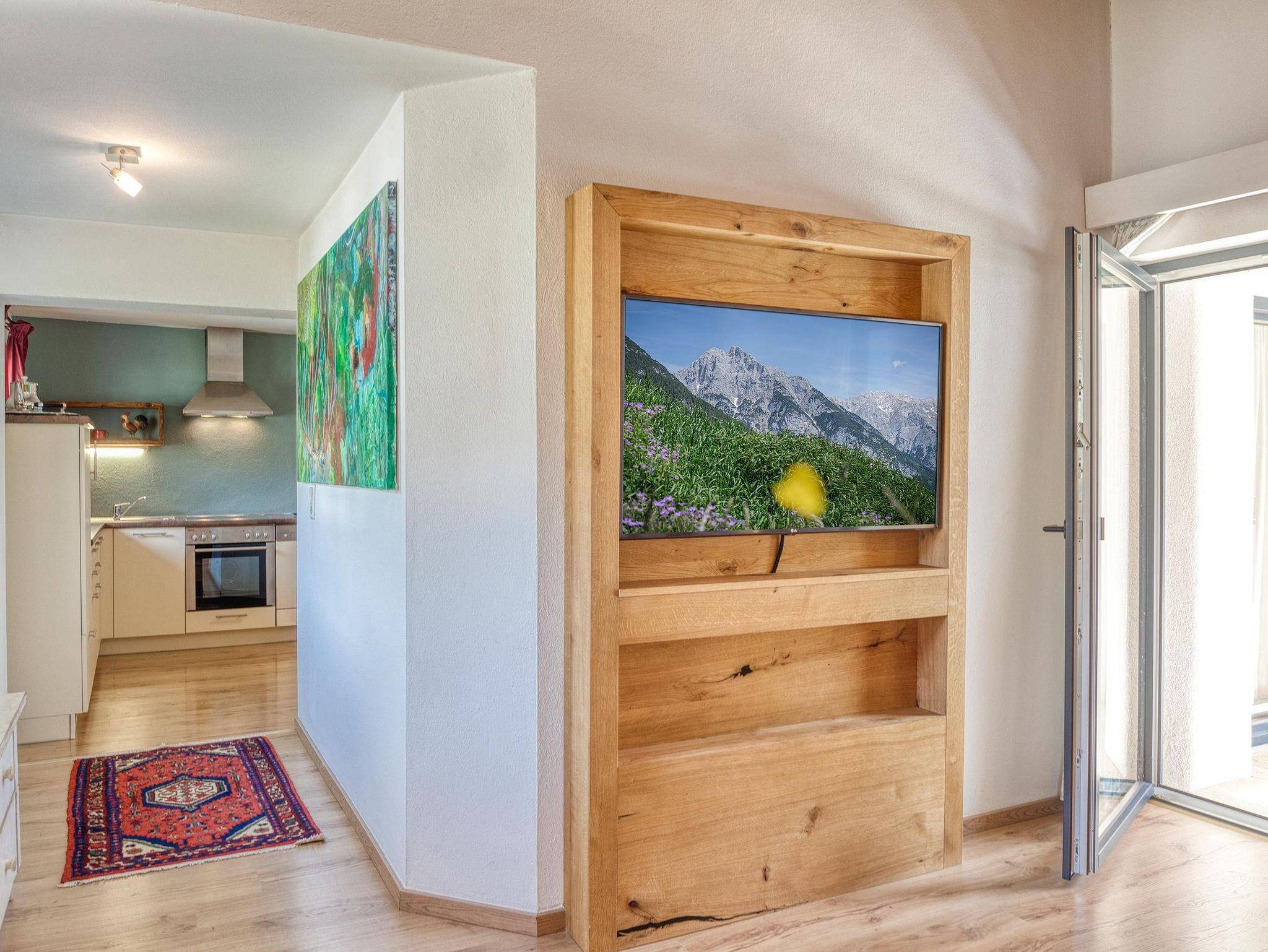 Eine großzügige Terrasse Richtung Westen mit Gartenmöbel und Sonnenliegen wo Sie den herrlichen Ausblick auf die Leutascher Bergwelt und das Wettersteingebirge genießen können. Sowie einen kleinen Balkon Richtung Osten für Ihren morgendlichen Kaffee.