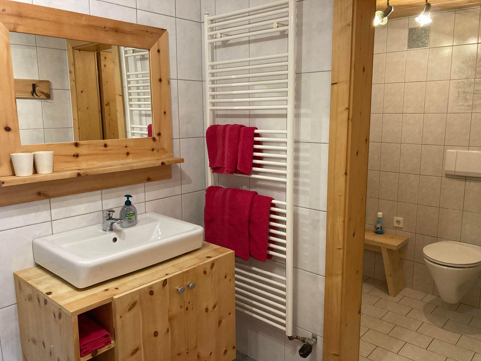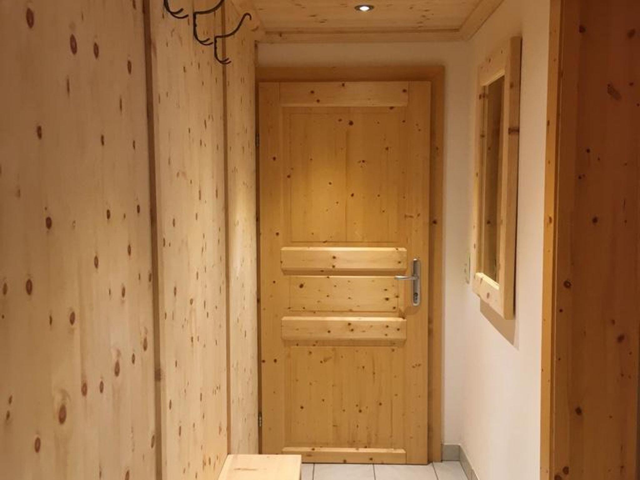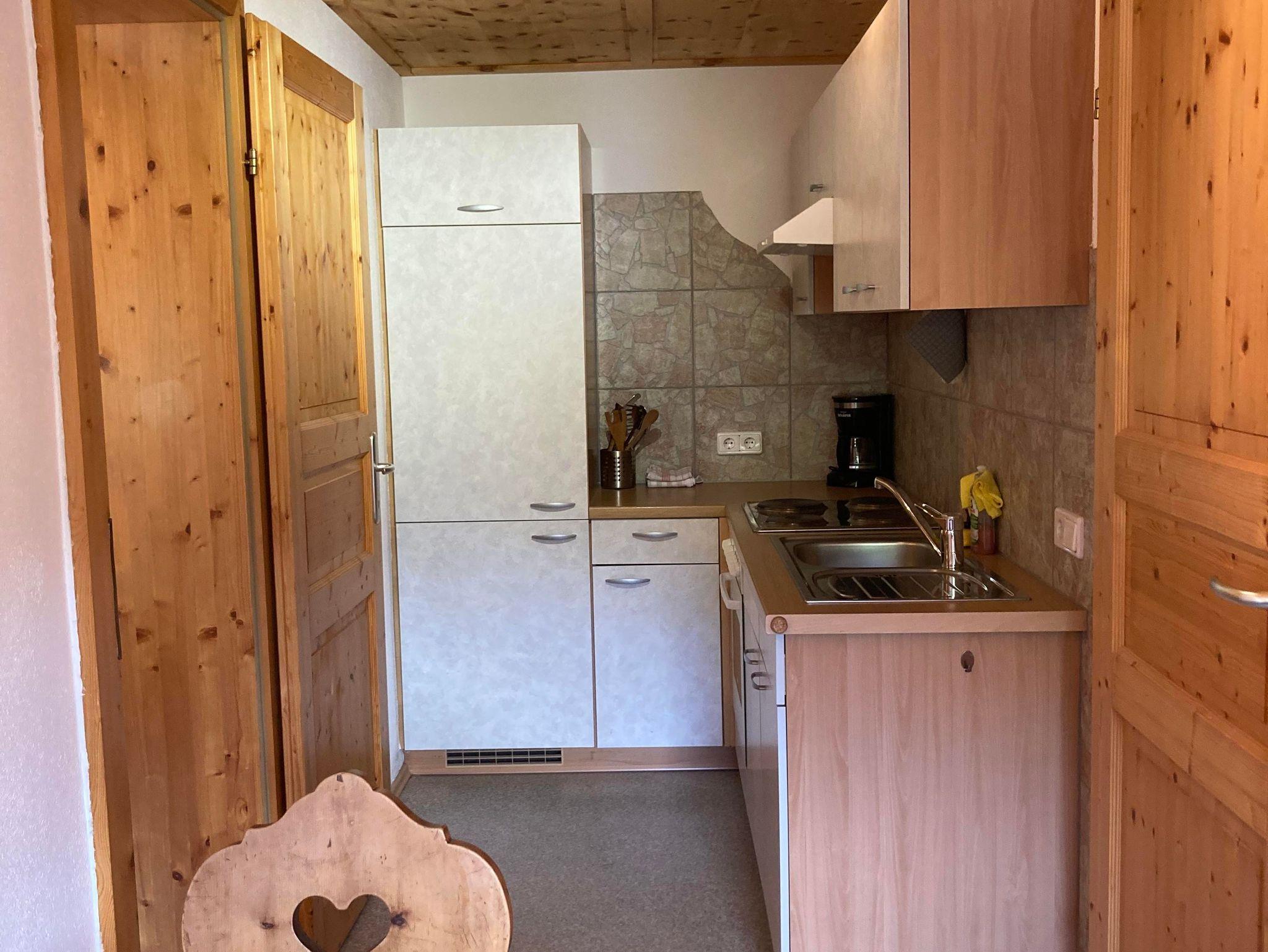 Ein gemütliches Appartement mit Flur, Schlafraum und separaten kleinen Küche. Die neu gestalteten Wohnräume sind mit viel Zirbenholz ausgekleidet und mit Zirbenmöbeln rustikal eingerichtet und liebevoll dekoriert. Der Duft des Zirbenholzes begleitet Sie durch die ganze Etage und verbreitet ein wohliges und angenehmes Gefühl. Das Badezimmer verfügt über Dusche, Waschbecken und ein separates WC. Der Zugang zum Balkon liegt direkt gegenüber dem Appartement und ist über den Flur sofort zu erreichen.