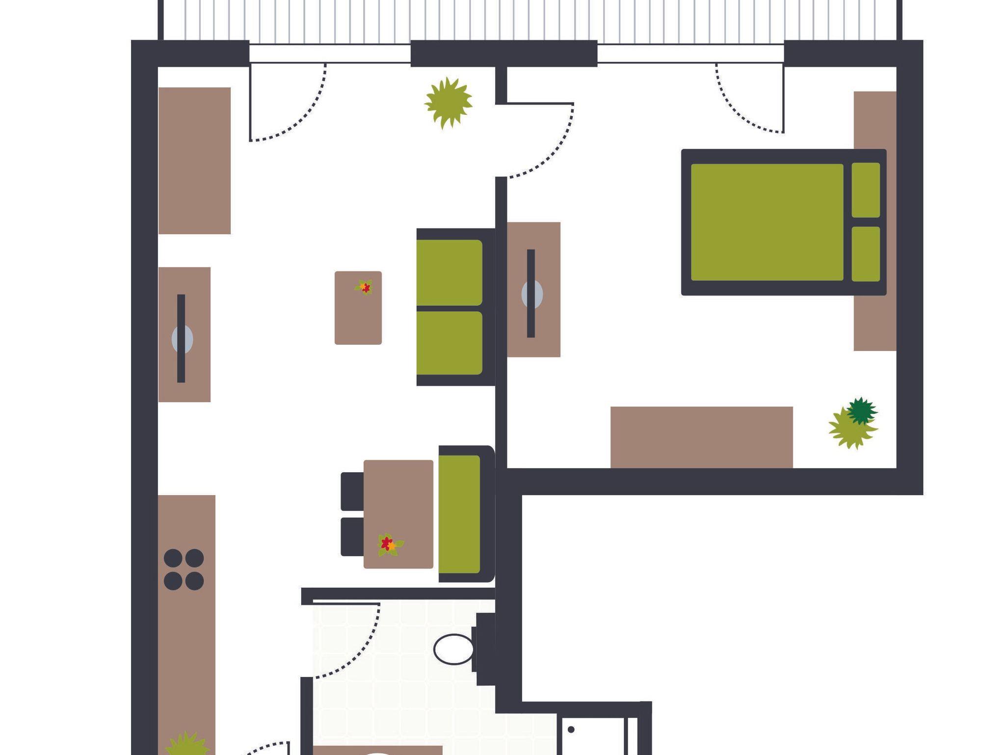 Dieses Apartment ist ca. 40 - 48 m² groß und bestens ausgestattet und ideal für 2-4 Personen, es ist eine Wohnung mit einem Wohnschlafzimmer und 1 getrennten Schlafzimmer mit Komfortmatratzen, 1 Küche, 1 Dusche, 1 WC, TV, Radio, Telefon, Safe, Haarföhn, Handtücher, Bettwäsche, Geschirr, Balkon, usw...