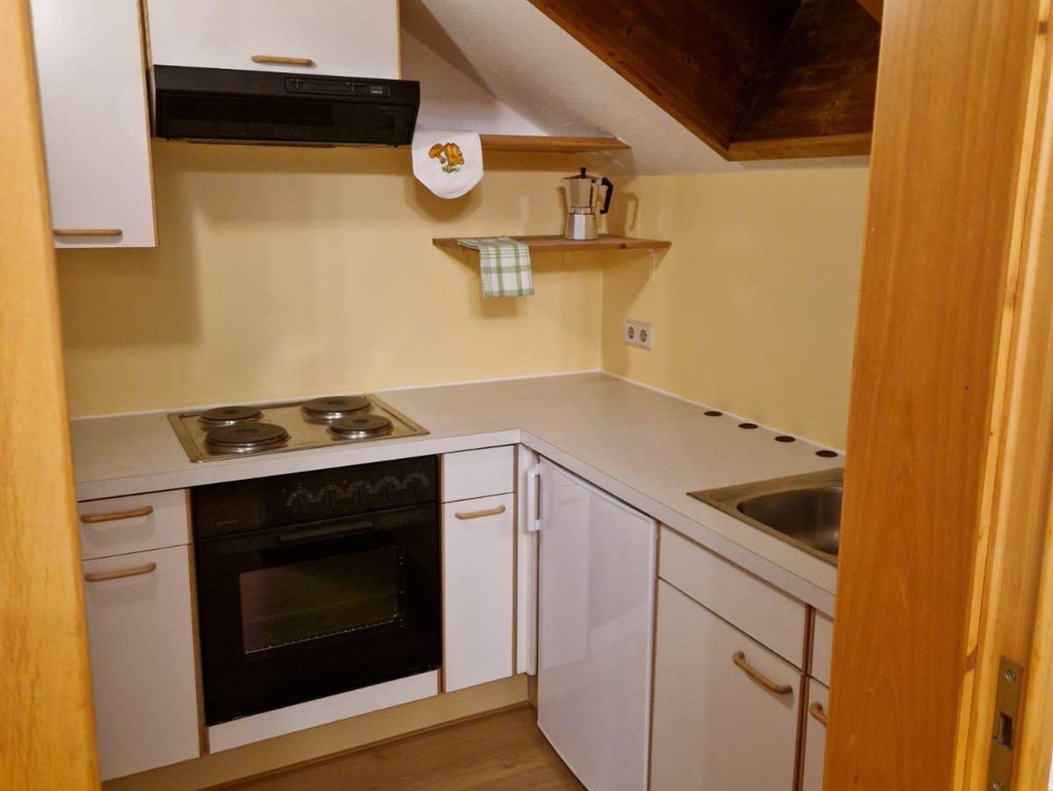 Vorraum mit Garderobe. Wohn-Schlafraum und getrennte Küche. Vom Bett aus wunderbarer Blick in den Sternenhimmel.