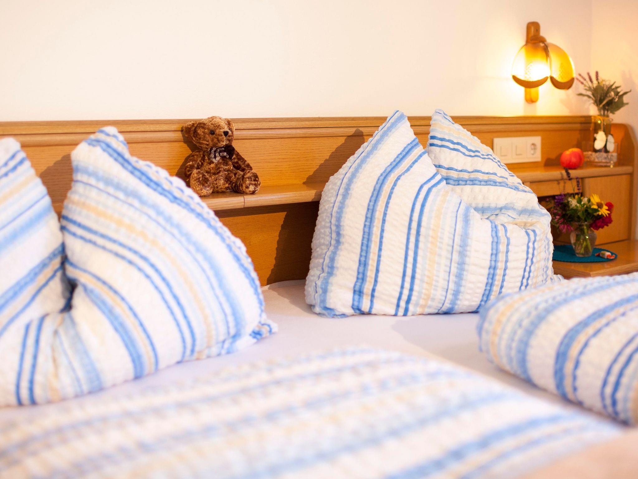 Die Zimmer sind im 2.Stock.Traumhafte Aussicht auf unsere Felder und auf die Lienzer Dolomiten.DieSonne,die Ruhe, Heuernte, Kühe beim Grasen und Relexen ,Haushund Aron beim Faulenzen ,einen Tratsch mit dem Nachbarn-das können Sie am Balkon genießen.
