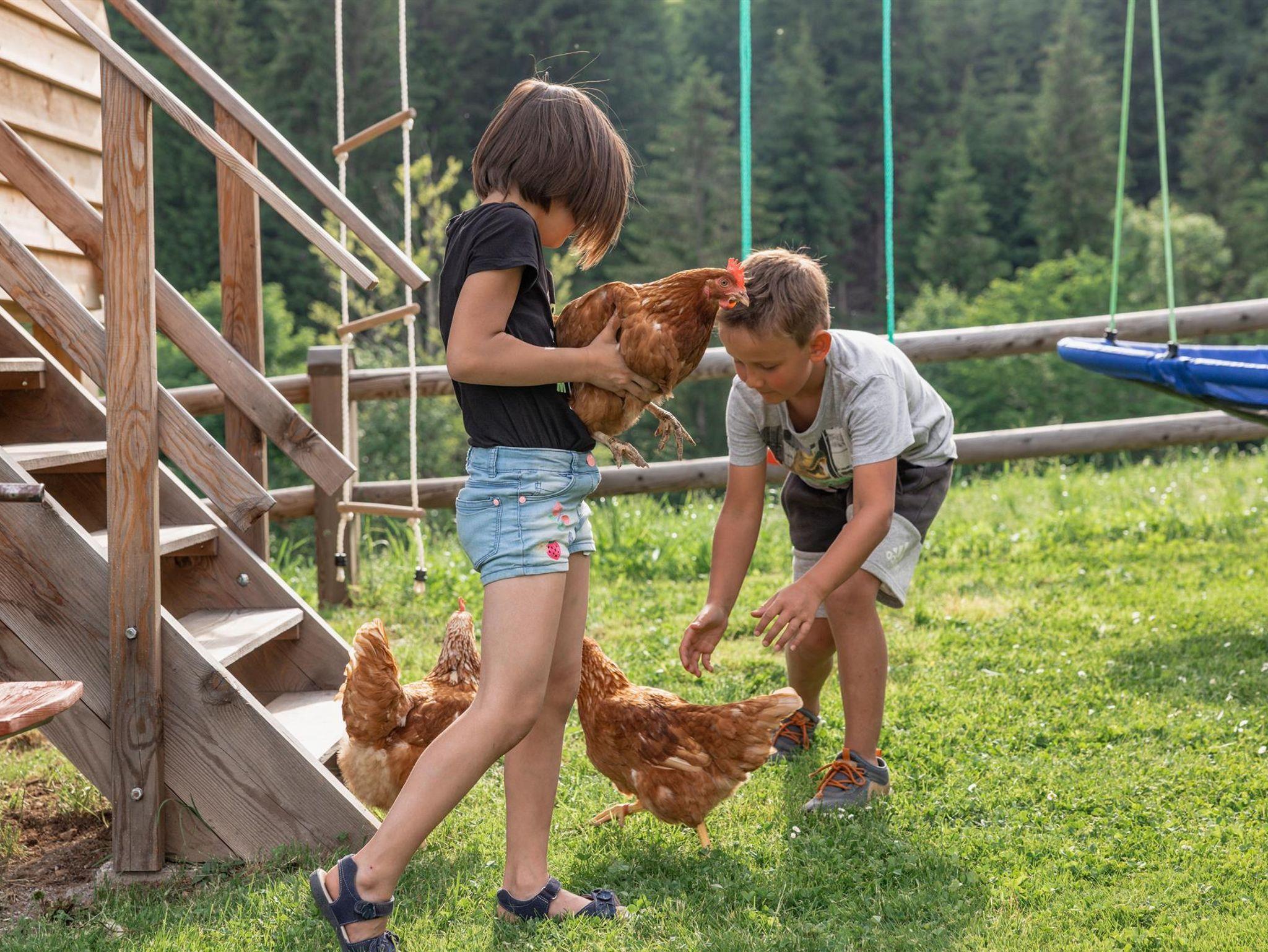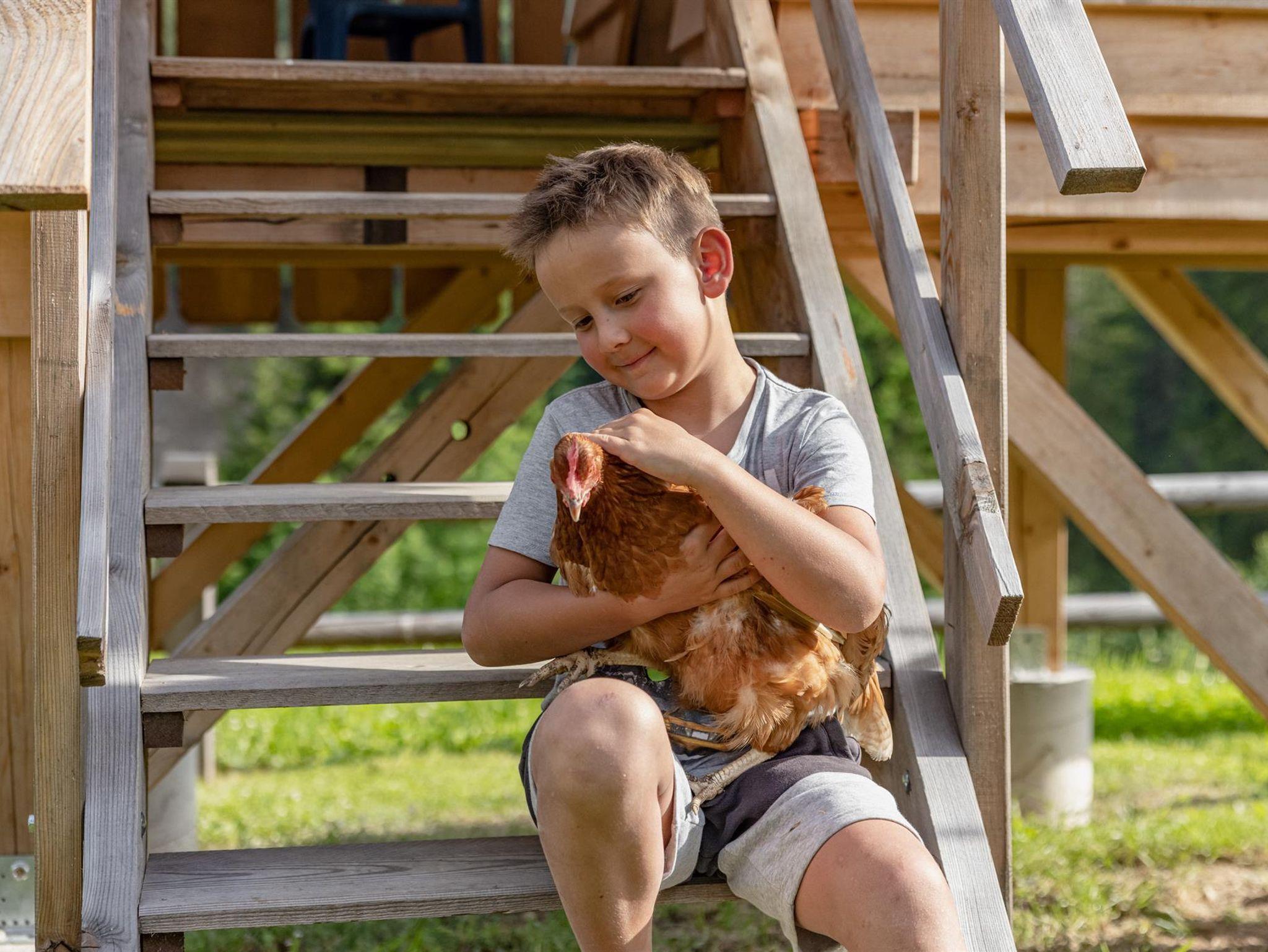 Wir bewirtschaften unseren kleinen Bauernhof mit Milchkühen, Schweinen, Hühnern, Hasen und unserer süßen Hauskatze Minka.