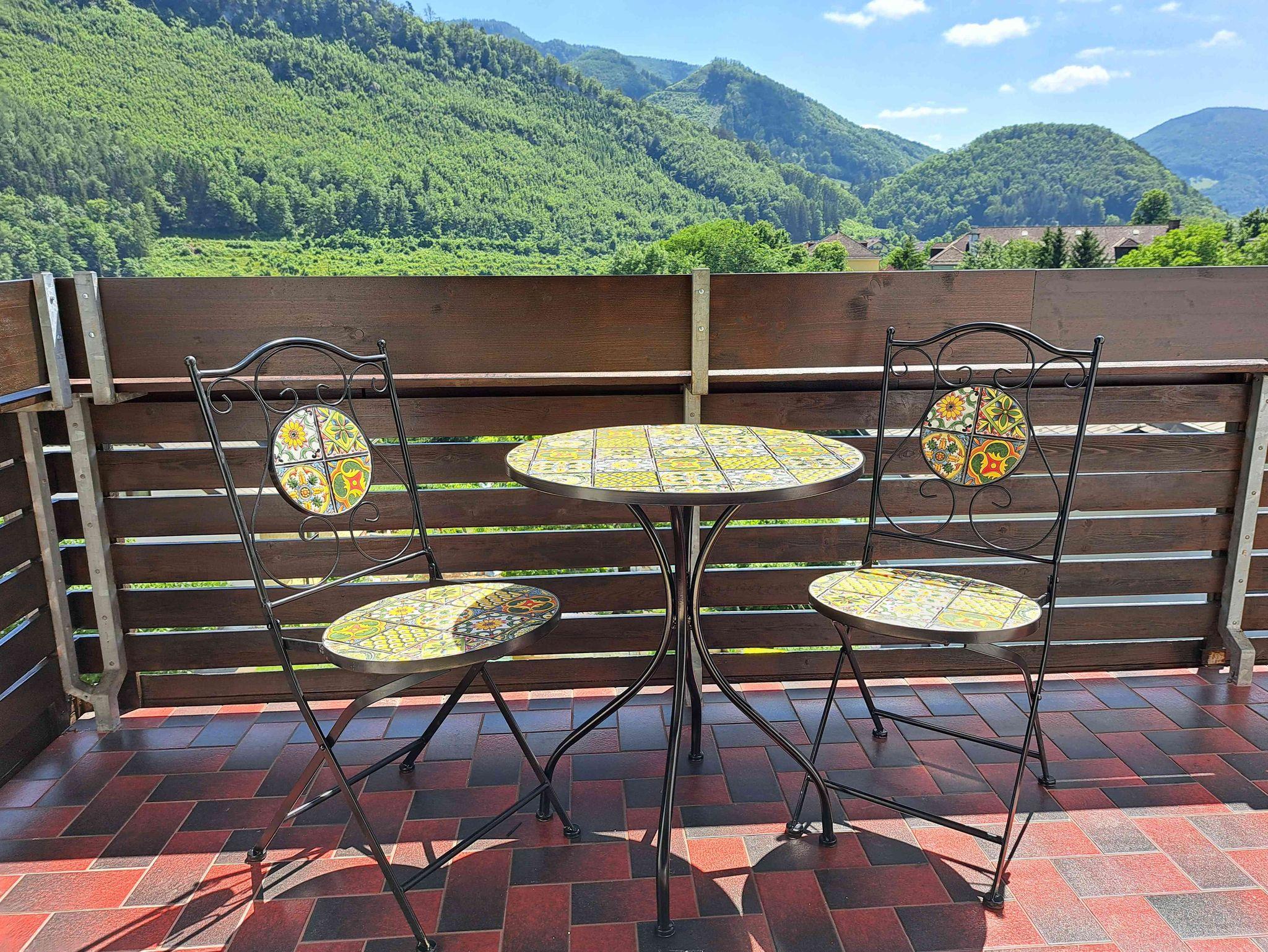 Appartement 2 „Holunder“ bietet auf 53 m2 Platz für 2 - 4 Personen. Schlafzimmer, Wohnzimmer mit Auszieh-Couch, Bad und komplett neuer Küche. Und vor der Tür eine Terrasse mit Blick auf das Stift, den Spitzbrand und Stangental.
